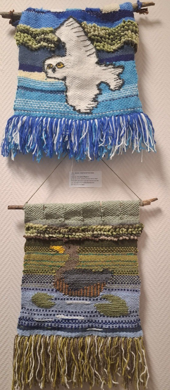 На выставке представлены произведения декоративно-прикладного искусства и народного творчества начинающих мастеров. Среди участников — дети из Детской школы искусств: Нечаева Дарья и Мельникова Анастасия, преподаватель Хоменко Екатерина Васильевна. Они представили свои работы в технике ручного ткачества.