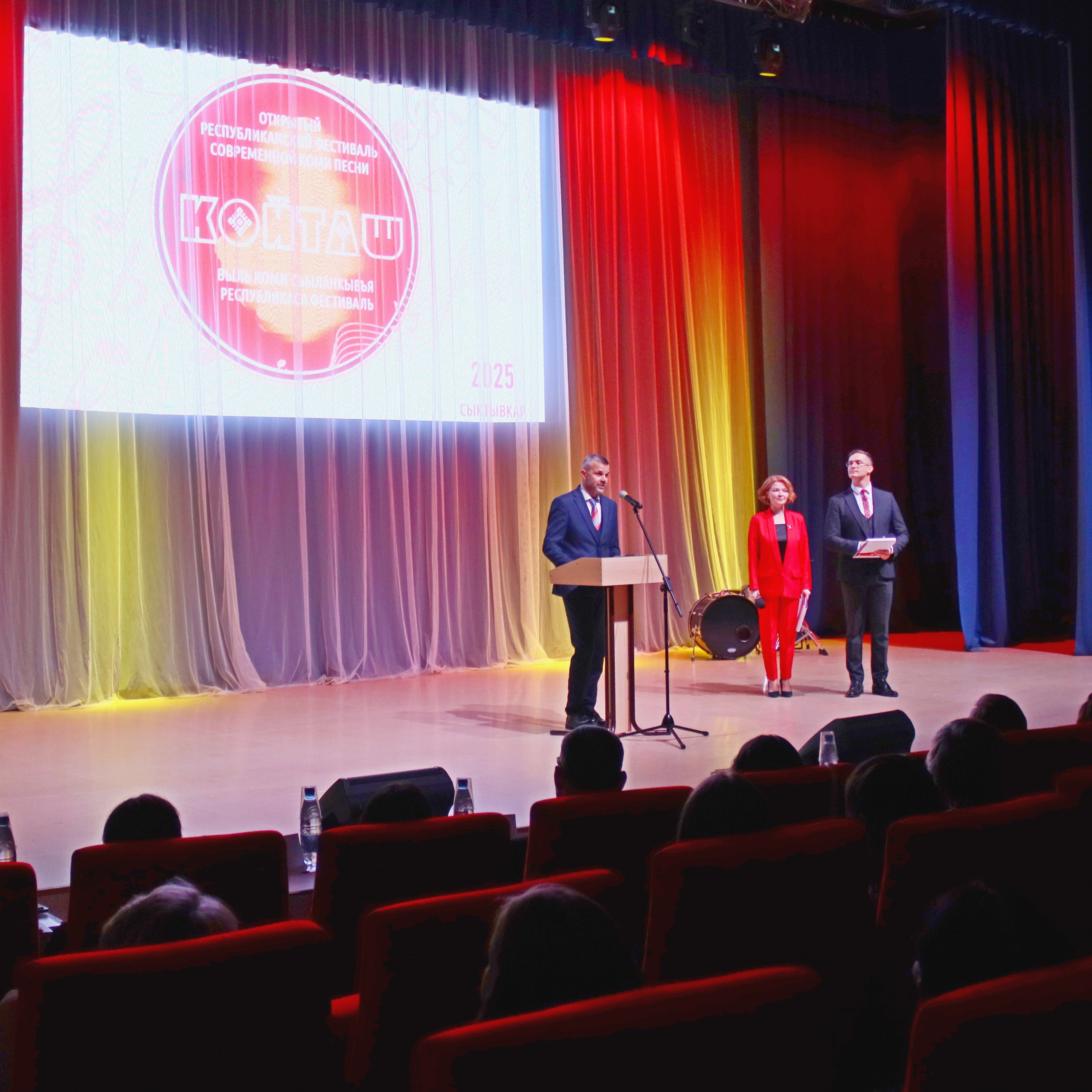 Друзья, только что дал старт молодёжному фестивалю современной коми песни «Койташ». Пожелал зрителями и участникам вдохновения и тёплой атмосферы.