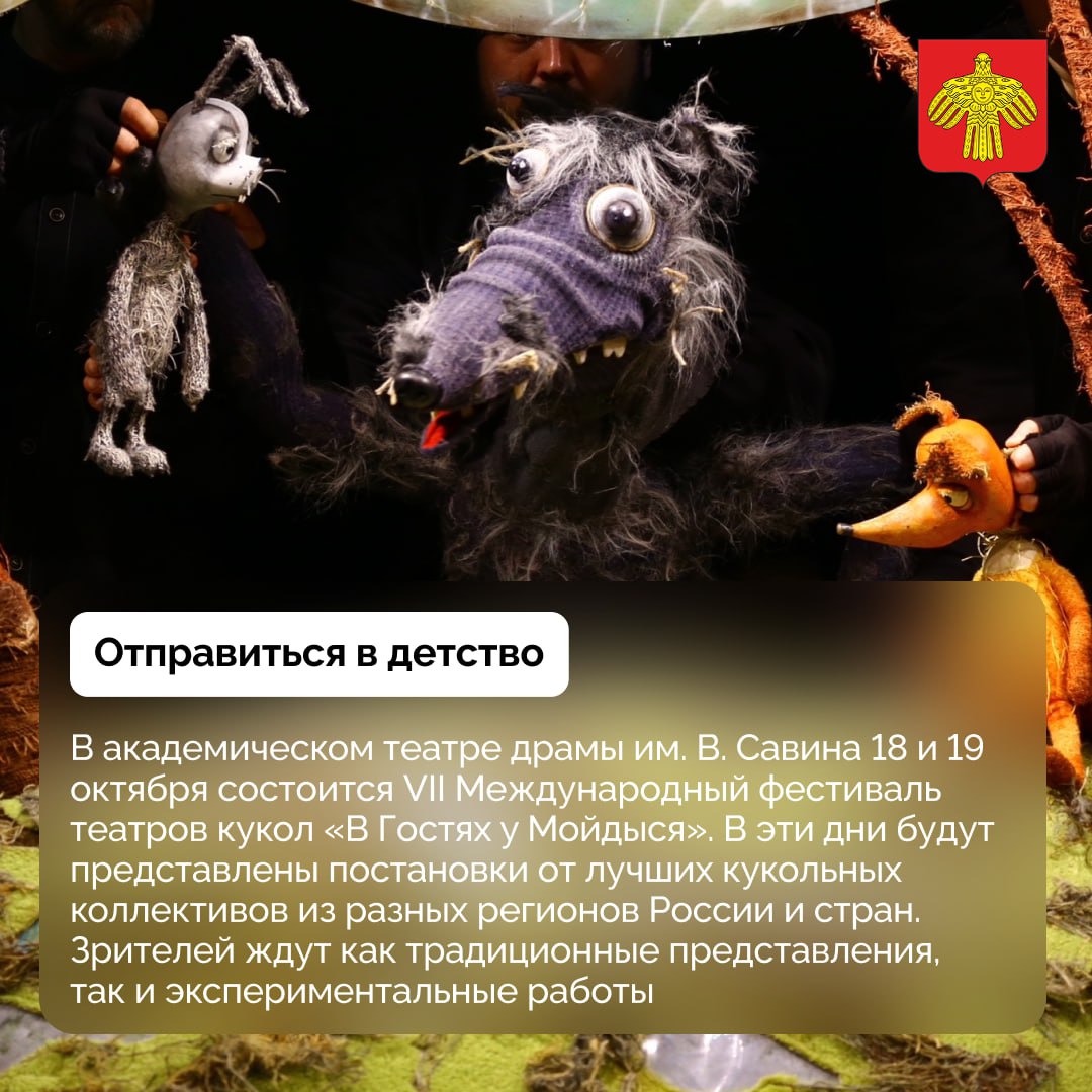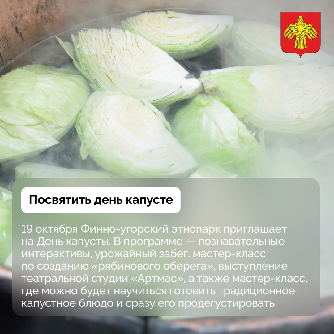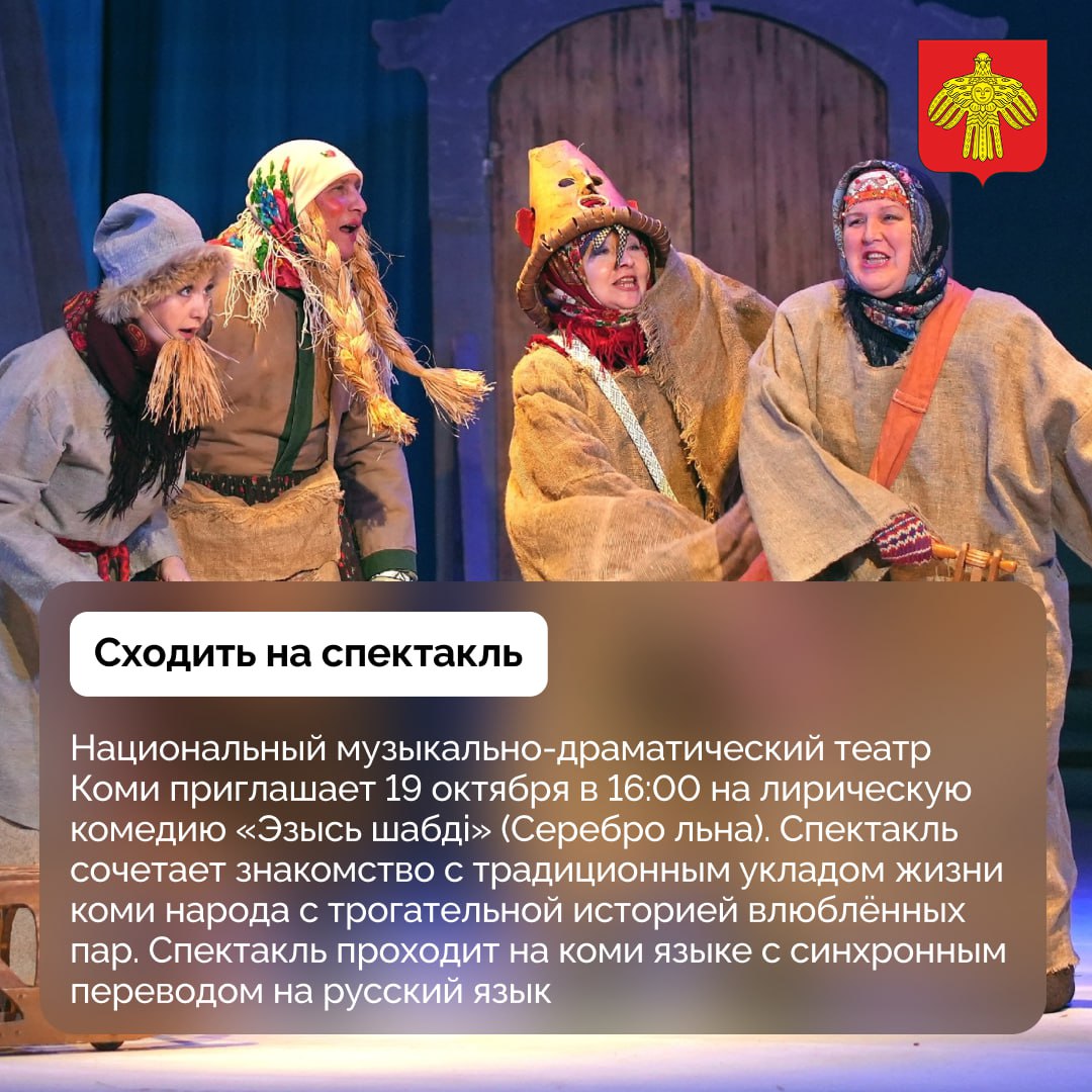 В подборке — День капусты, Международный фестиваль театров кукол «В Гостях у Мойдыся», лирическая комедия «Эзысь шабдi» (Серебро льна) и другое.