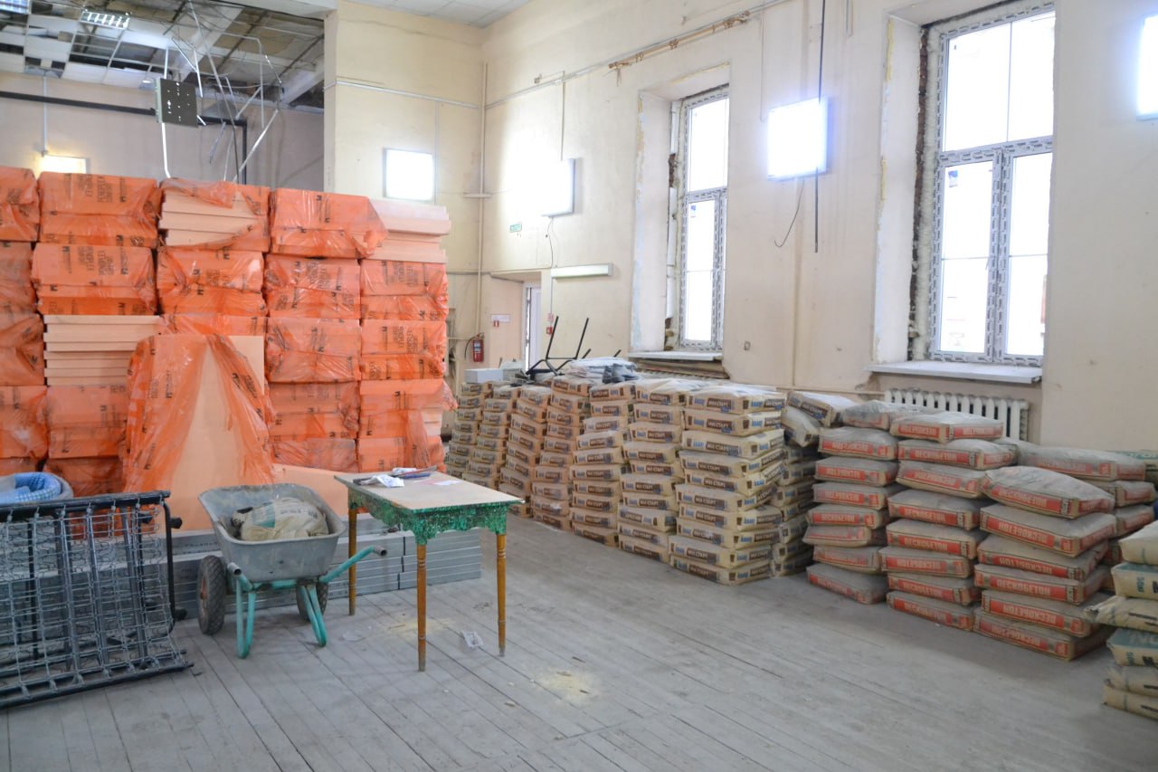 В учреждении уже установлены новые окна, проведён демонтаж перегородок, дверных проёмов и деревянных полов в двухэтажной части здания, проводится работа по замене кровли одноэтажной части здания.