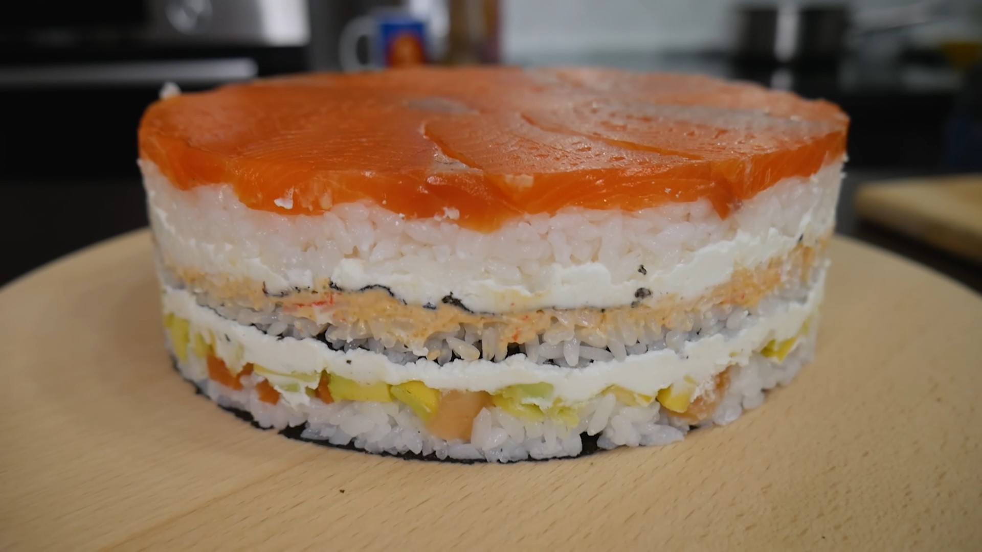 Хотите поразить гостей во время новогоднего застолья? Приготовьте этот вкуснейший суши-торт на закуску. Получится вкуснее, чем магазинные роллы, а как эффектно выглядит!