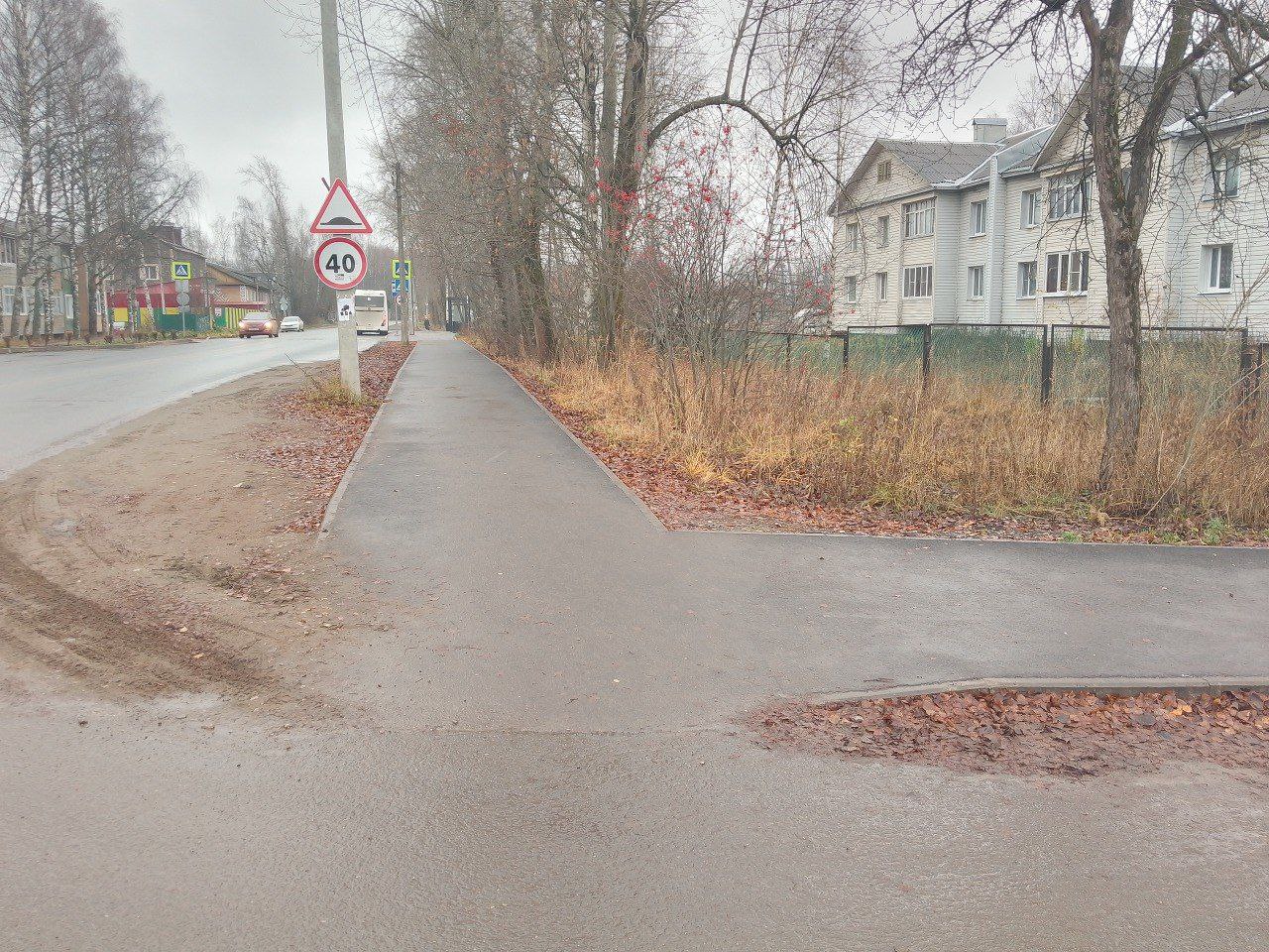 Начну с поселка Краснозатонский. Здесь отремонтировали тротуар вдоль улицы Корабельной от Ухтинской до памятника участникам Великой Отечественной войны. Теперь там лежит новый тротуар шириной 2,2 метра с нормальным покрытием и бордюром. Это значит, что мамам с колясками удобнее ходить, что пожилые люди уверенней передвигаются, что зимой спецтехника сможет нормально почистить это место от снега. Такой тротуар — это безопасность. Это комфорт. Это забота о маломобильных жителях и о пешеходах вообще.