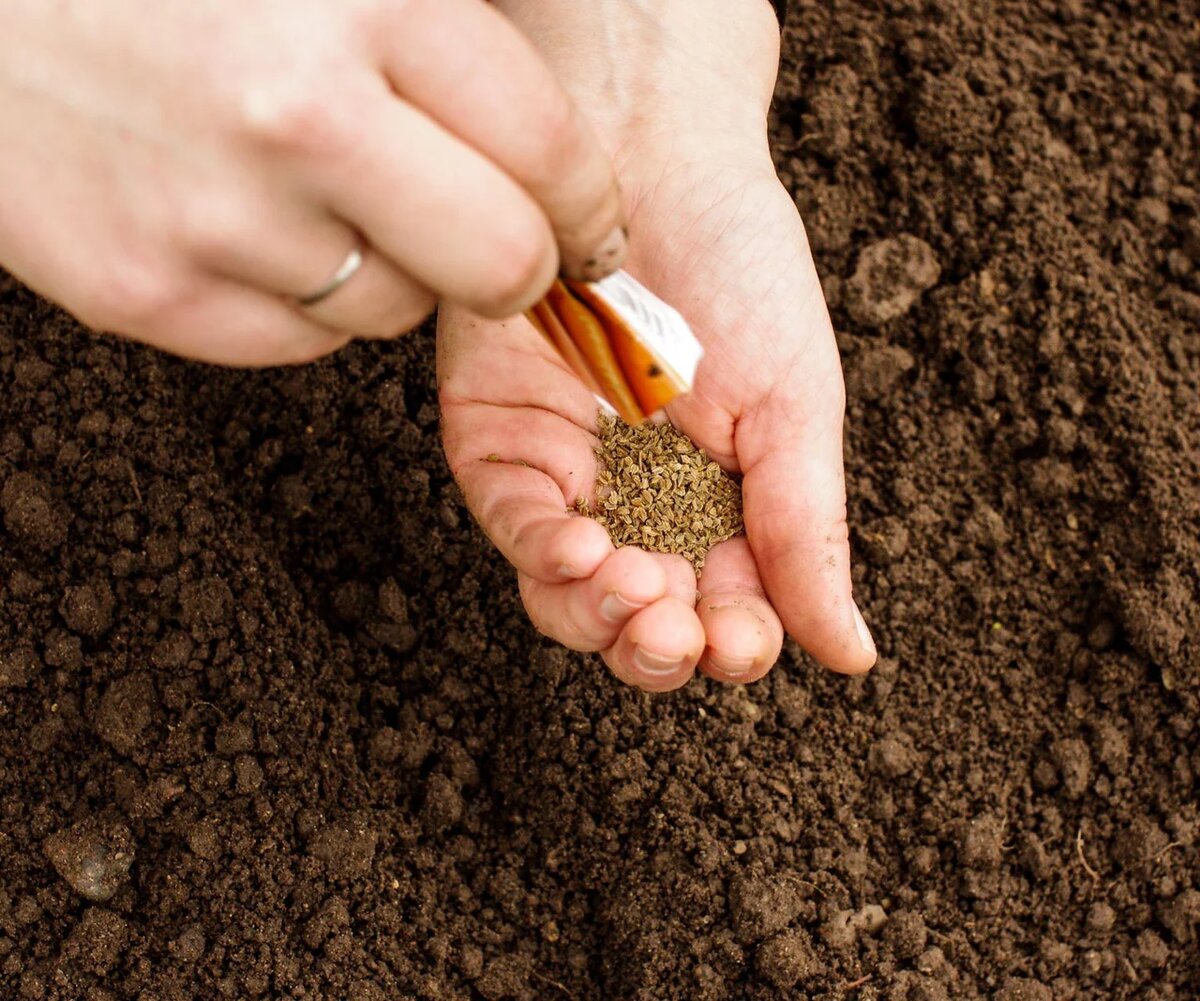 Во время посадки рекомендуется сеять сухие семена, и глубина заделки зависит от выбранной культуры. Для моркови это 2 см, а для лука можно увеличить до 4 см. Чтобы избежать корки, которая мешает прорастанию, можно засеять семена слоем торфа или перегноя.