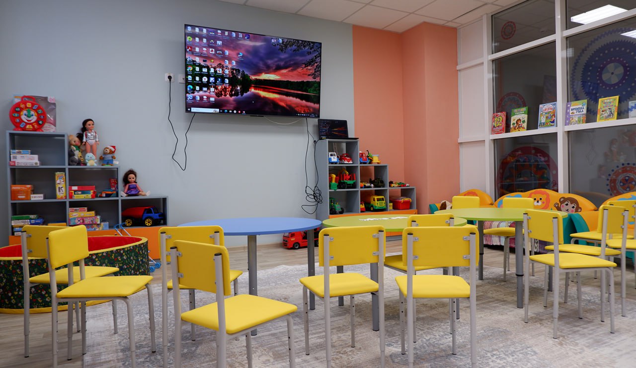В новом здании созданы условия для учебных занятий и досуга. Здесь есть спортплощадки, медкабинеты, сенсорная комната с тактильными дорожками, сухим бассейном, музыкальными инструментами, аромалампами. Работает психолог.