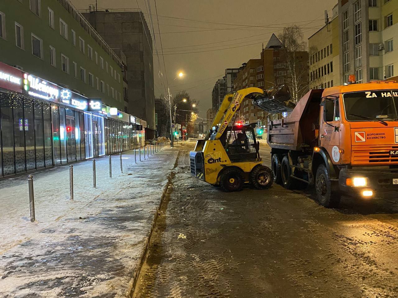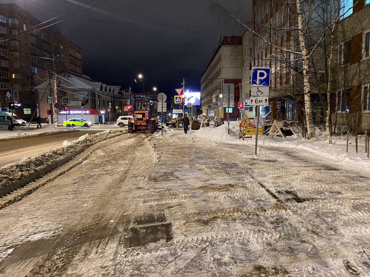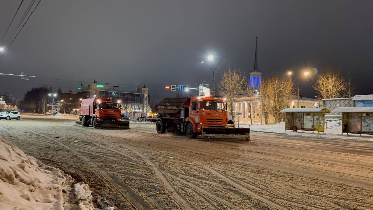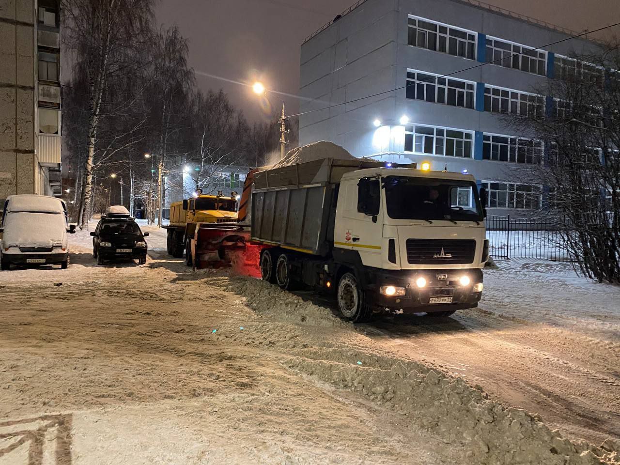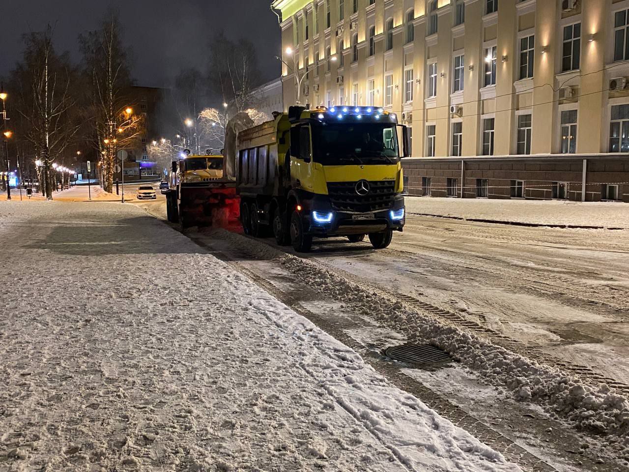 Ночная смена «Дорожного хозяйства» снова работала на совесть! За ночь вывезли 1637 кубометров снега с основных магистралей: это Октябрьский проспект (от ул. Орджоникидзе до Сысольского шоссе и обратно до ул. Карла Маркса), улица Красных Партизан (до Первомайской с парковочными карманами у госпиталя ветеранов с обеих сторон), заезд к школе №21 и Стефановская площадь.