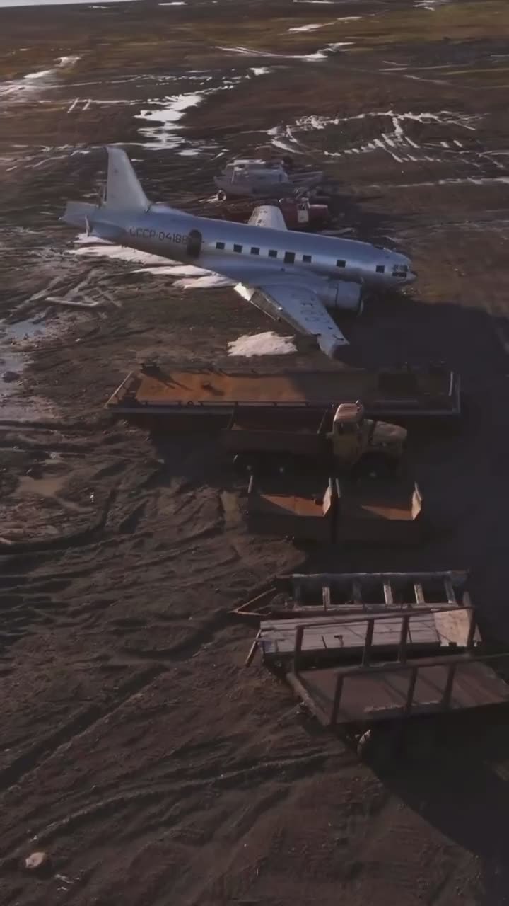Вокруг самолета видны остатки обсерватории имени Эрнста Кренкеля