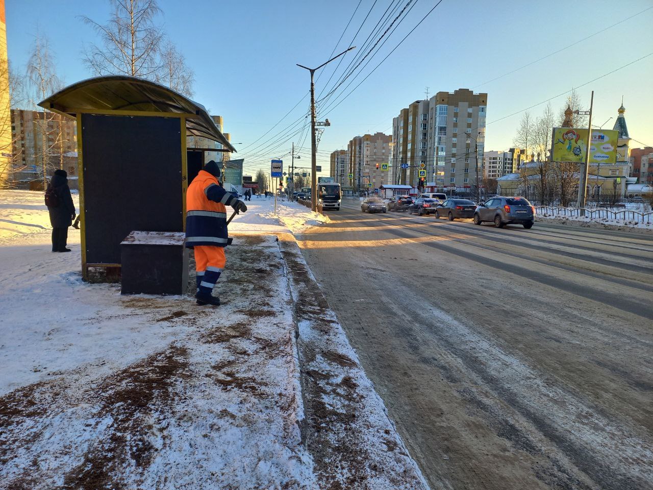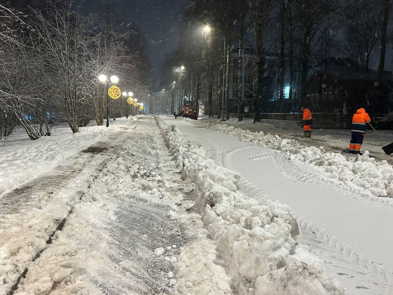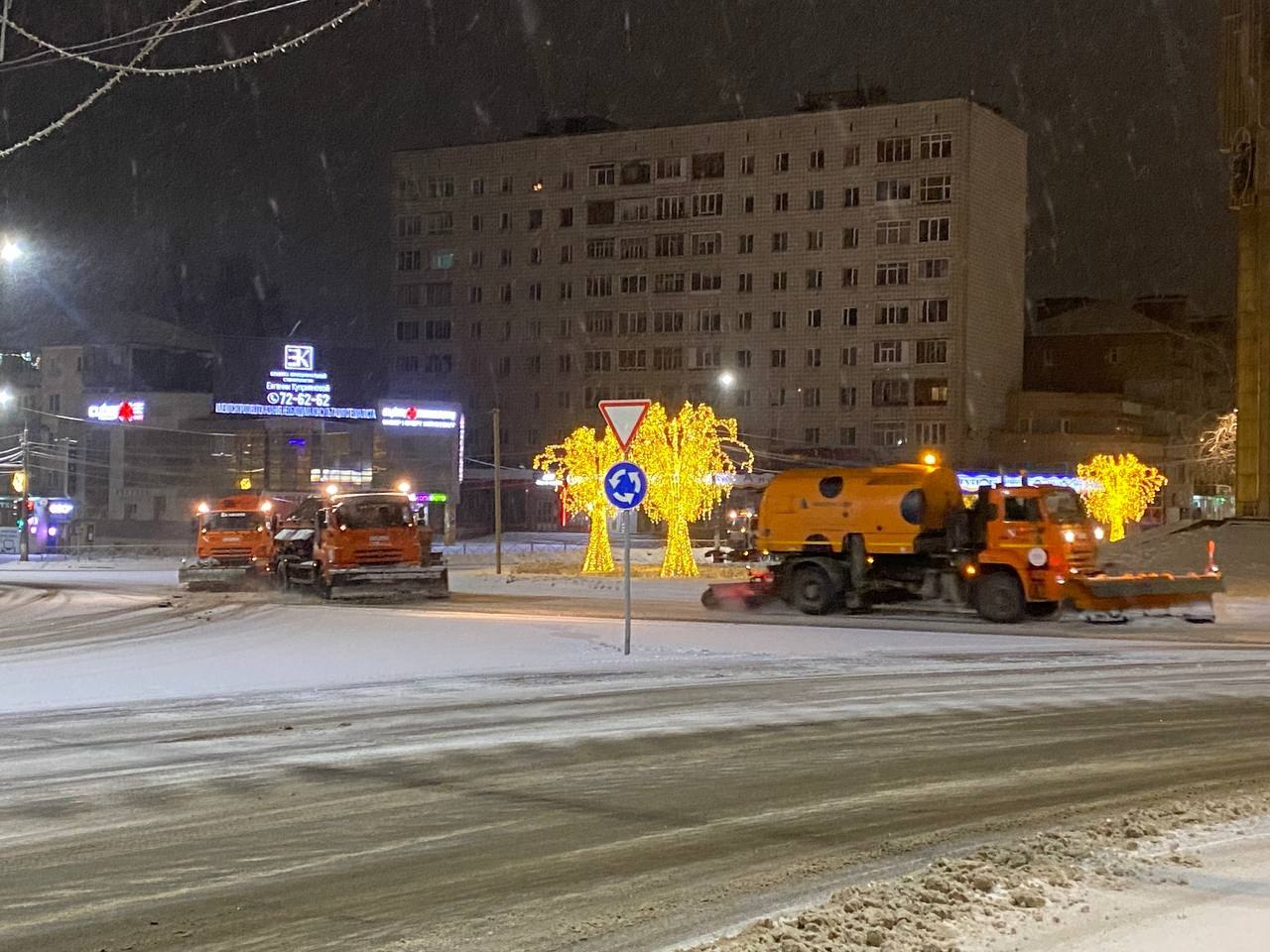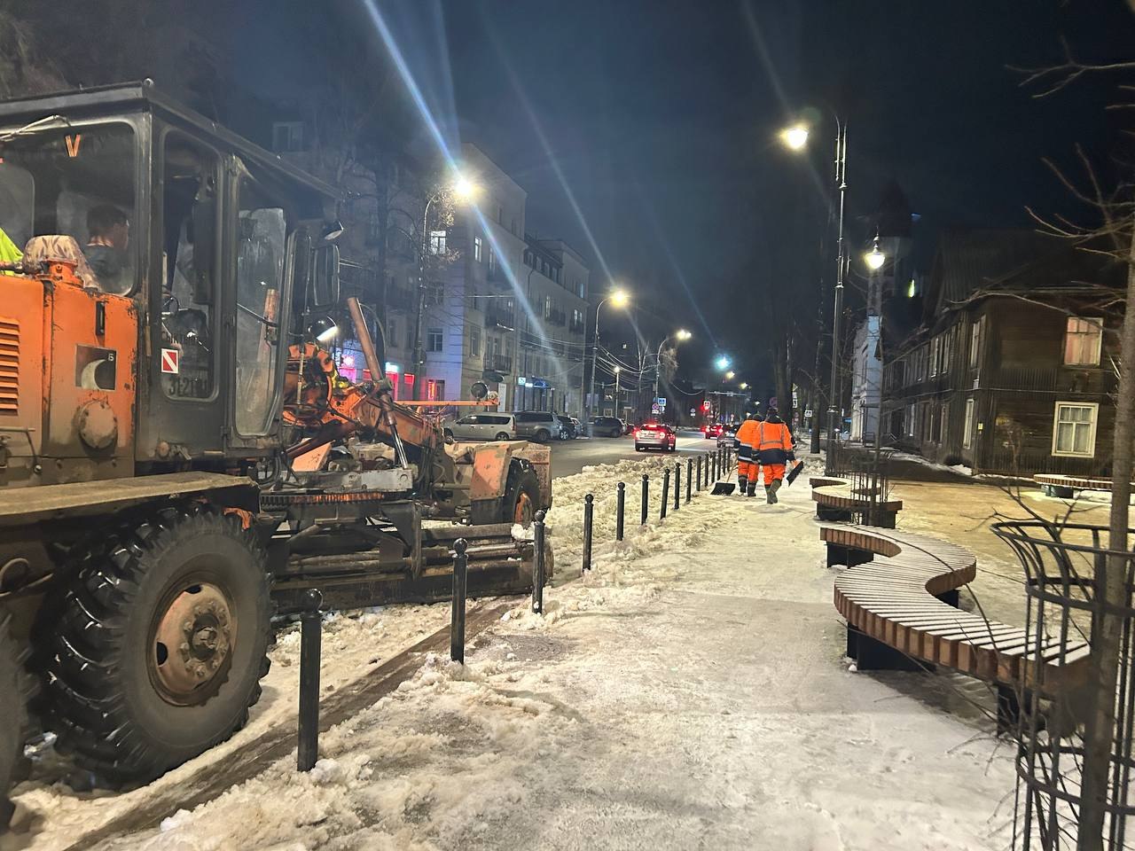 В ночь с пятницы на субботу было относительно тепло, поэтому главным стало не «колотить» накат, а максимально очистить центр города от уже выпавшего снега. Техника работала в исторической части: Орджоникидзе, Советской, Ленина, Кирова, Бабушкина и на Стефановской площади, параллельно подметались тротуары и проезжая часть с последующей обработкой пескосоляной смесью.