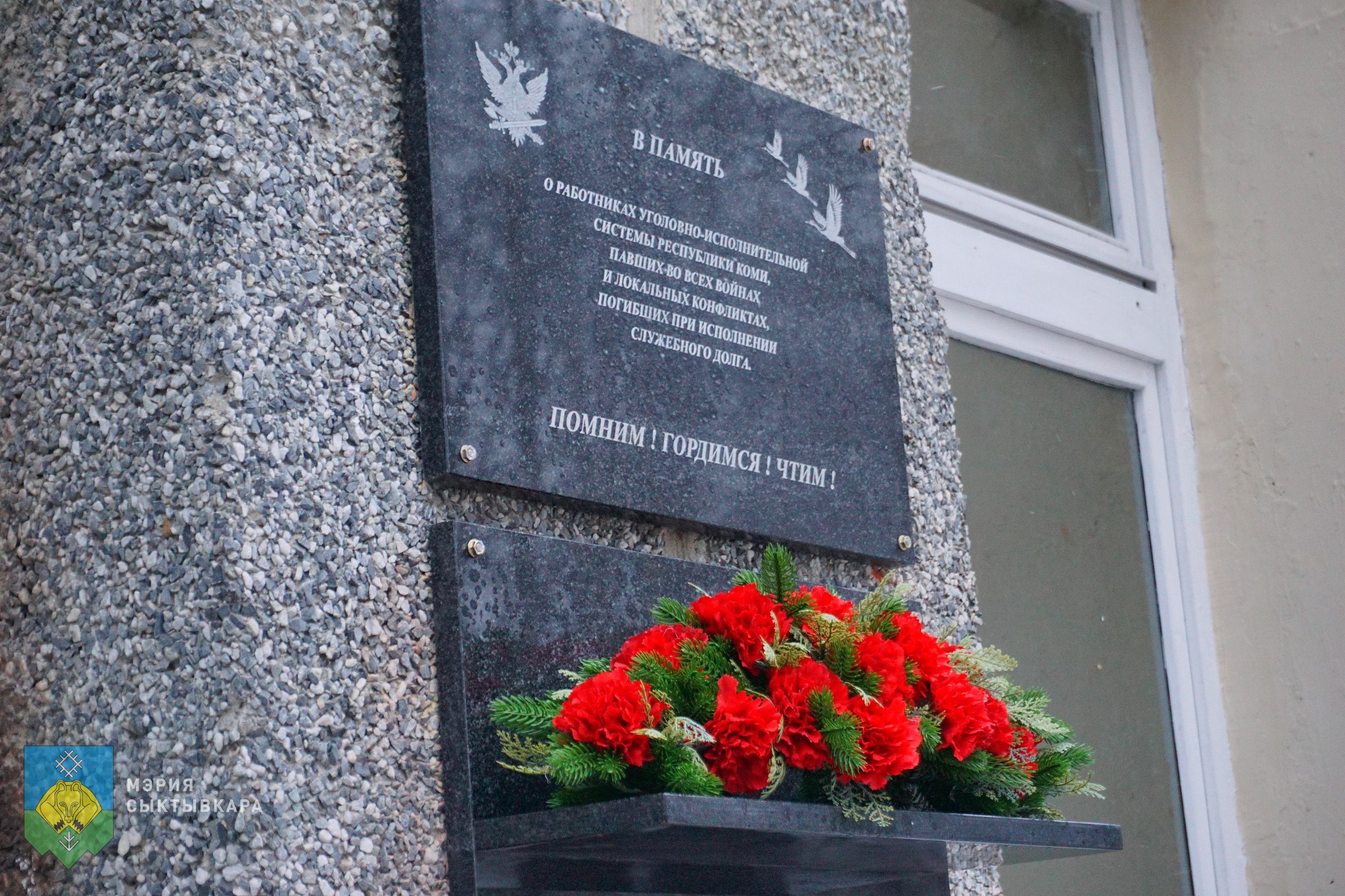 Мемориальная доска появилась на административном здании УФСИН России по Республике Коми. Она посвящена героям в двух ипостасях - памяти о работниках уголовно-исполнительной системы нашей республики, которые пали на полях сражений в войнах и локальных конфликтах, и тех, кто погиб, до конца выполняя свой служебный долг здесь, в мирное время. Это мост между эпохами. Мост, который связывает ратный подвиг и подвиг служебный.