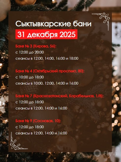 Режим работы сыктывкарских бань 31 декабря и в новогодние праздники