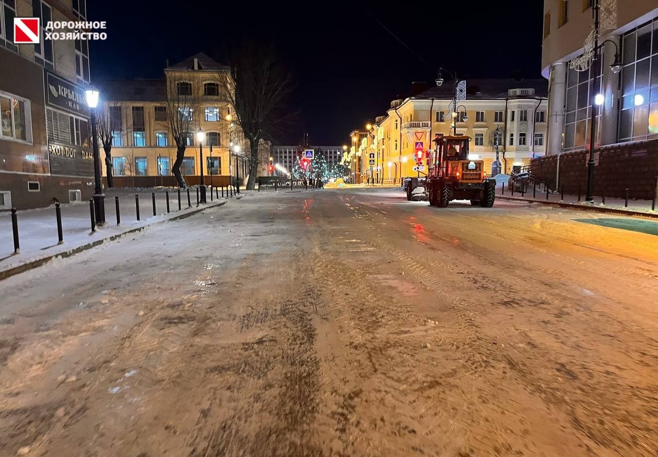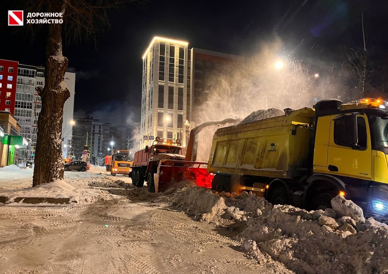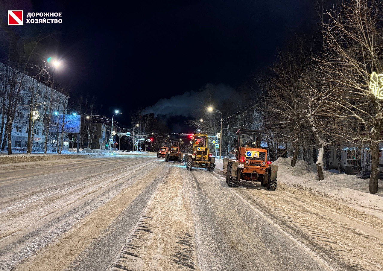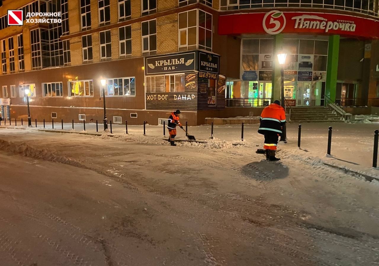 Ночью «Дорожное хозяйство» занималось вывозом снега с проезжей части и обочин. Работы прошли на Кирова, Заводской, Свободы, Коммунистической.