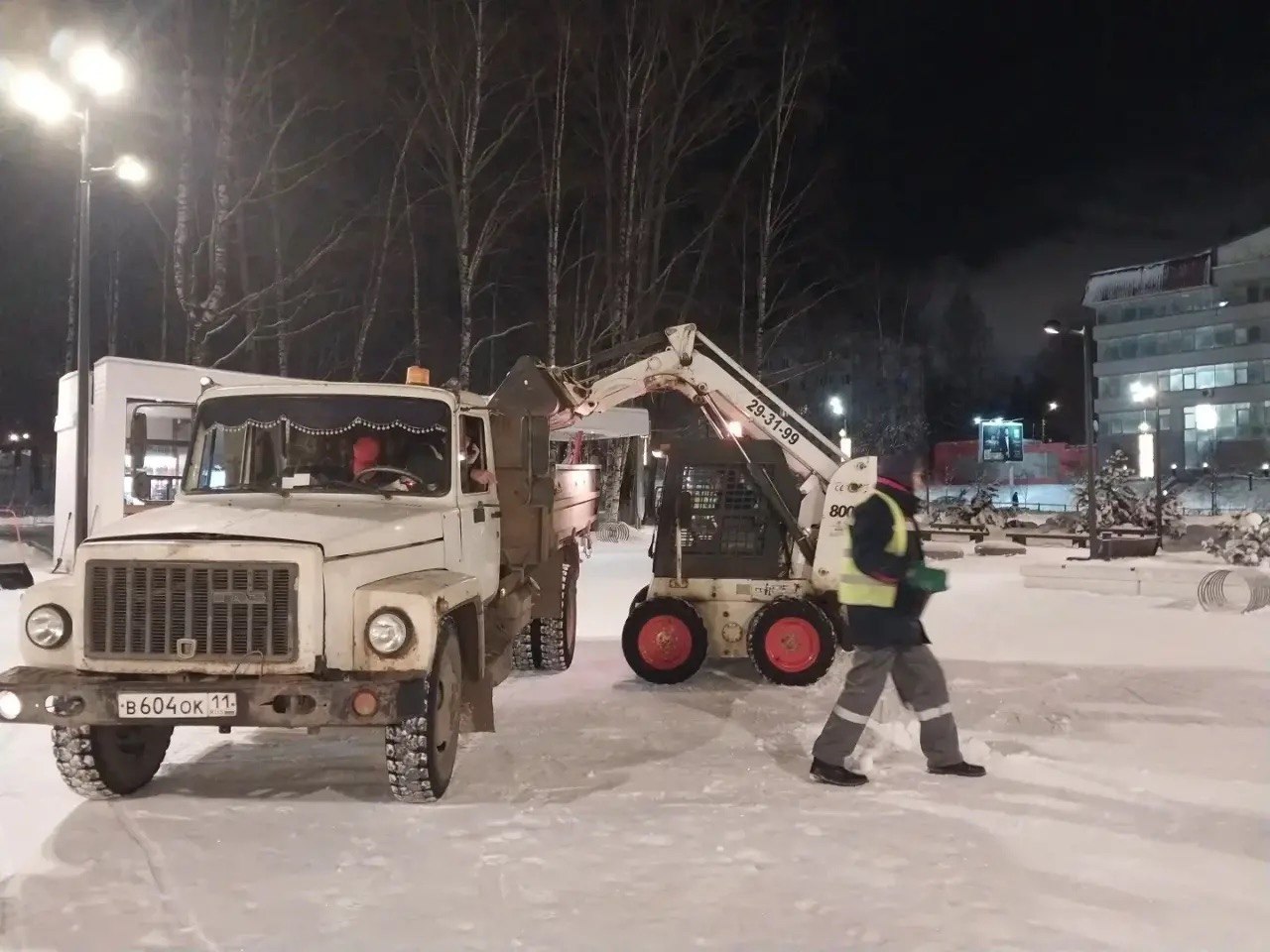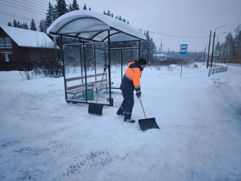 В Эжве «Жилкомхоз» занимался механизированной и ручной уборкой тротуаров и остановочных комплексов от снега в Емвале. Также проводилась механизированная уборка дворовых территорий.