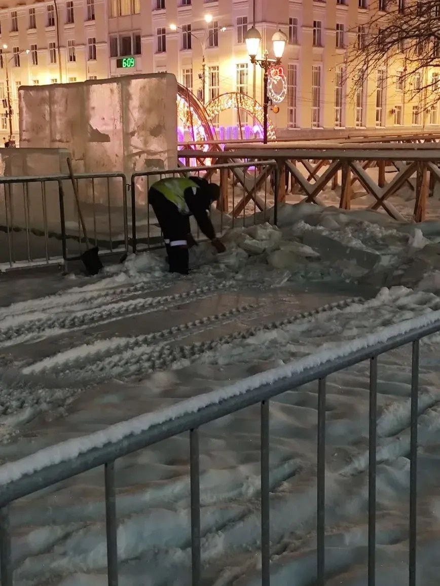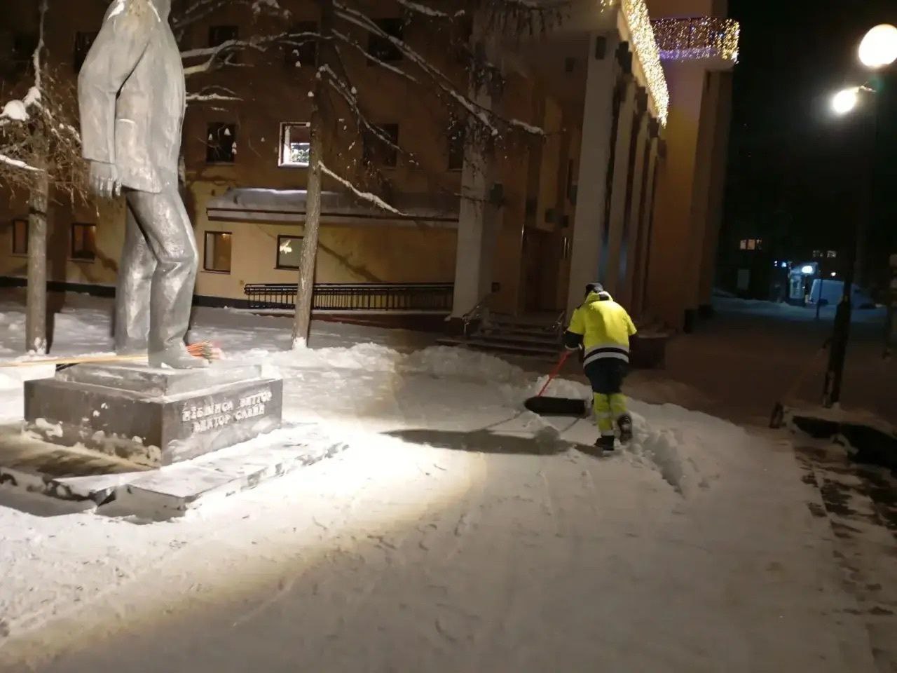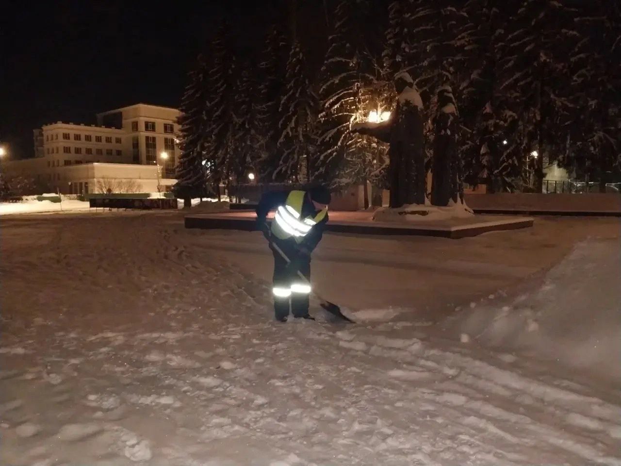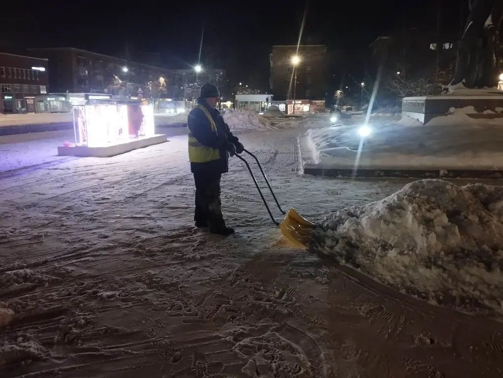 Произведена ручная уборка и посыпка пескосоляной смесью городских территорий