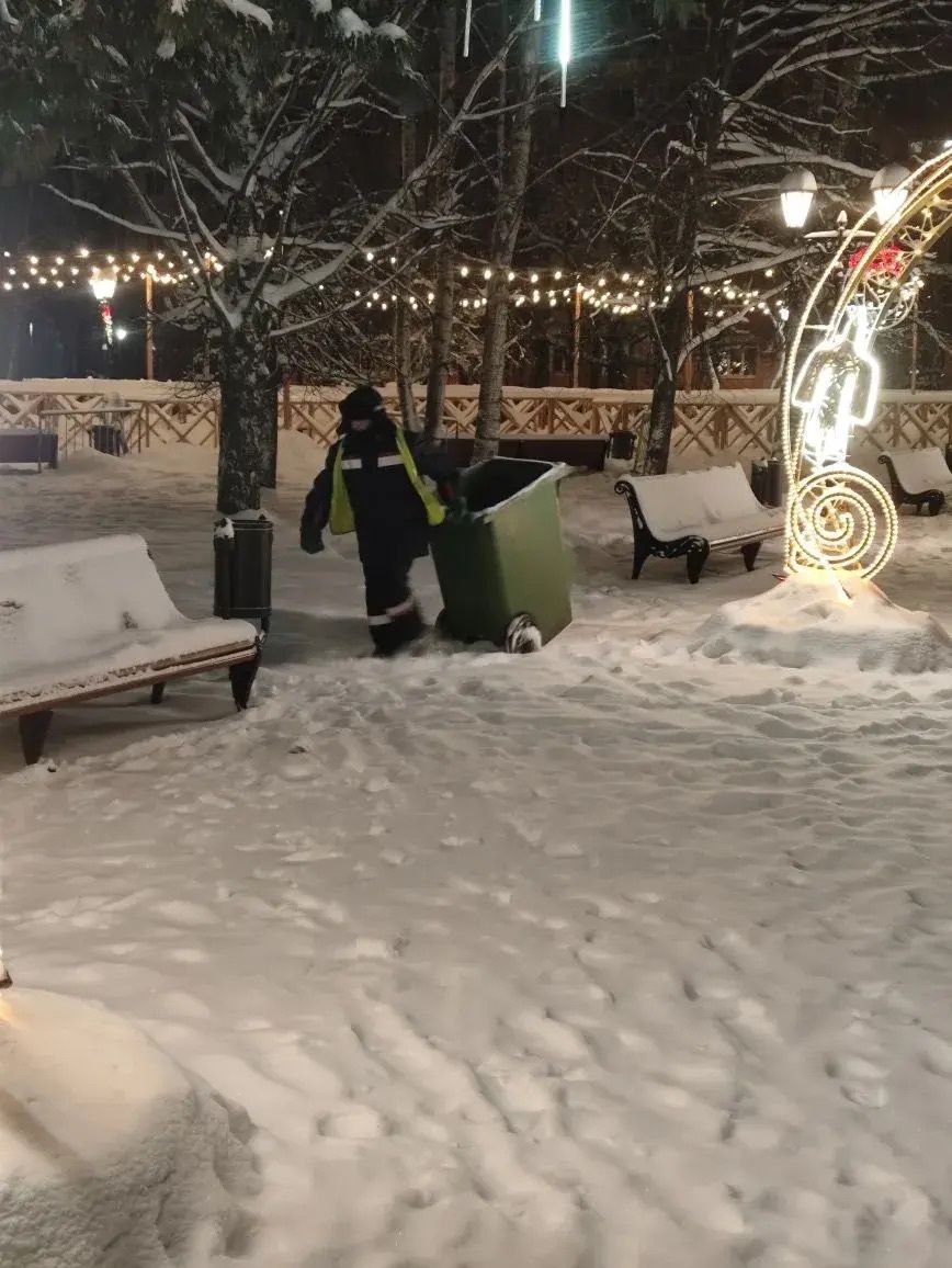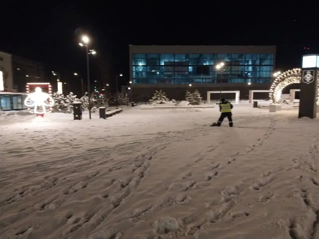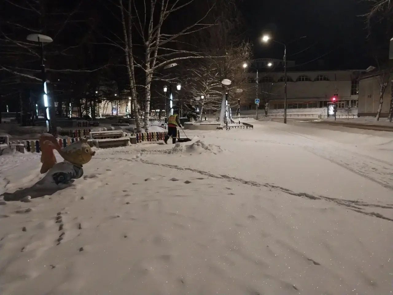 Произведена ручная уборка и посыпка пескосоляной смесью городских территорий