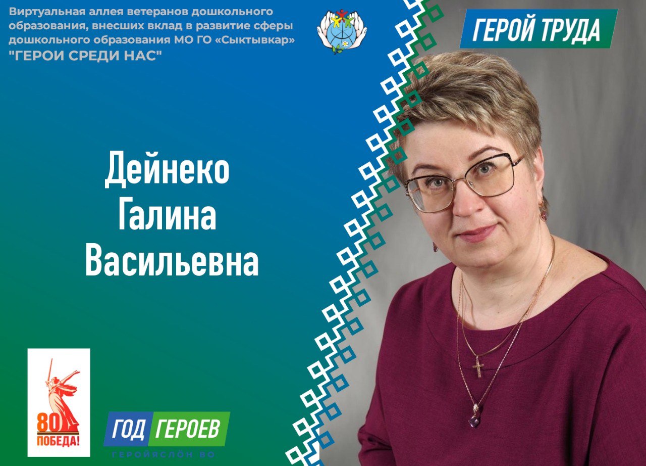 Галина Васильевна Дейнеко более 40 лет посвятила отрасли дошкольного образования, начав свою трудовую деятельность в 1984 году воспитателем детского сада.