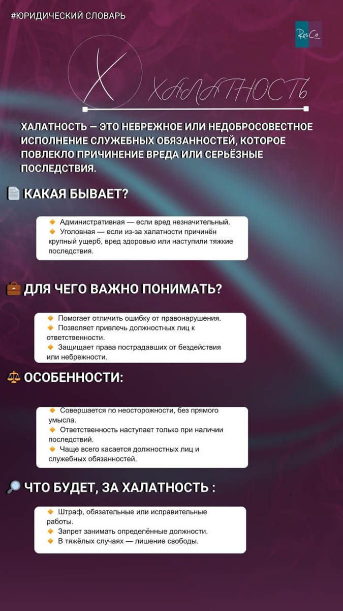 Халатностью называется безответственное или небрежное выполнение своих служебных обязанностей, которое приводит к различным негативным последствиям или даже ущербу. Такой подход к делу может обернуться серьезными проблемами не только для самого виновника, но и для окружающих, пишет Дзен-канал "RosCo | Consulting & audit".