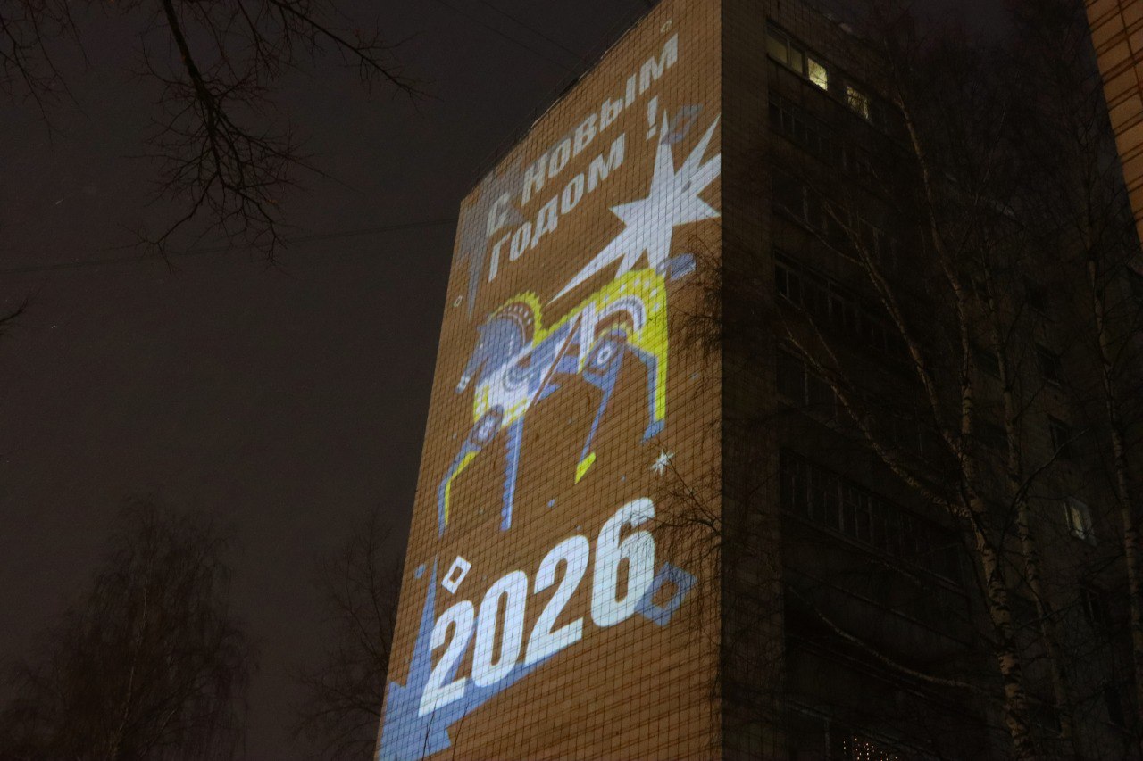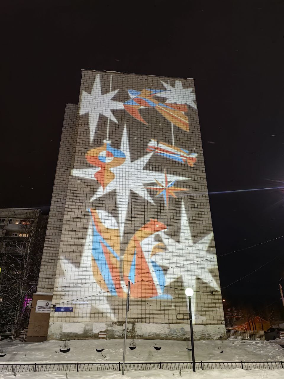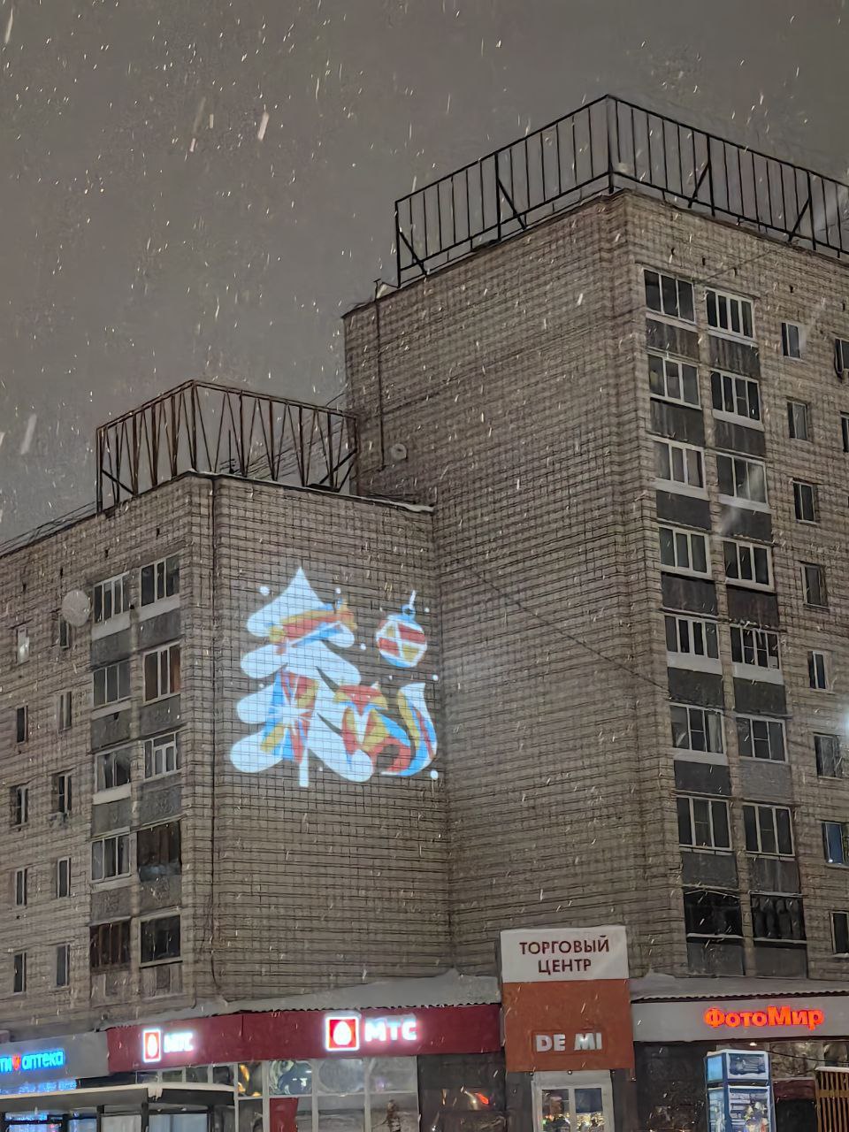 Друзья, в Сыктывкаре зажгли тематические проекции к Новому году. Световые рисунки появились на фасадах по Интернациональной, 172, Первомайской, 51, Коммунистической, 18 и Мира, 58 в Эжве.