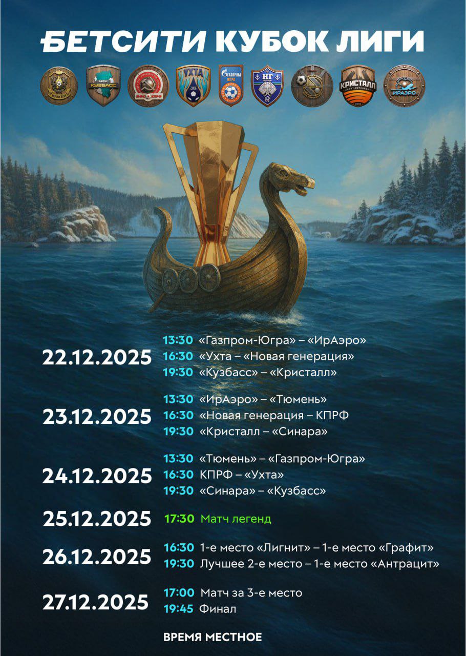 А вот и расписание всех матчей БЕТСИТИ Кубка лиги по мини футболу! Уже завтра в Кемерове стартует настоящий футзальный праздник — с 22 по 27 декабря на площадке «Кузбасс-Арена» сыграют сильнейшие клубы страны.