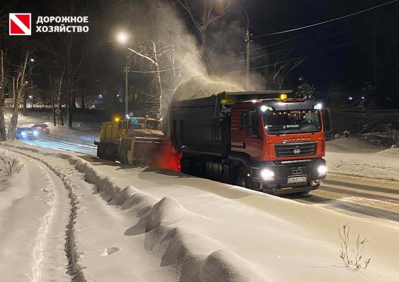 Расчистили заездные карманы на остановках и убрали снежные накаты как в историческом центре города, так и на улице Дырносской, Береговой, дороги в Шордор-1, на дороге "Сыктывкар - Эжва".