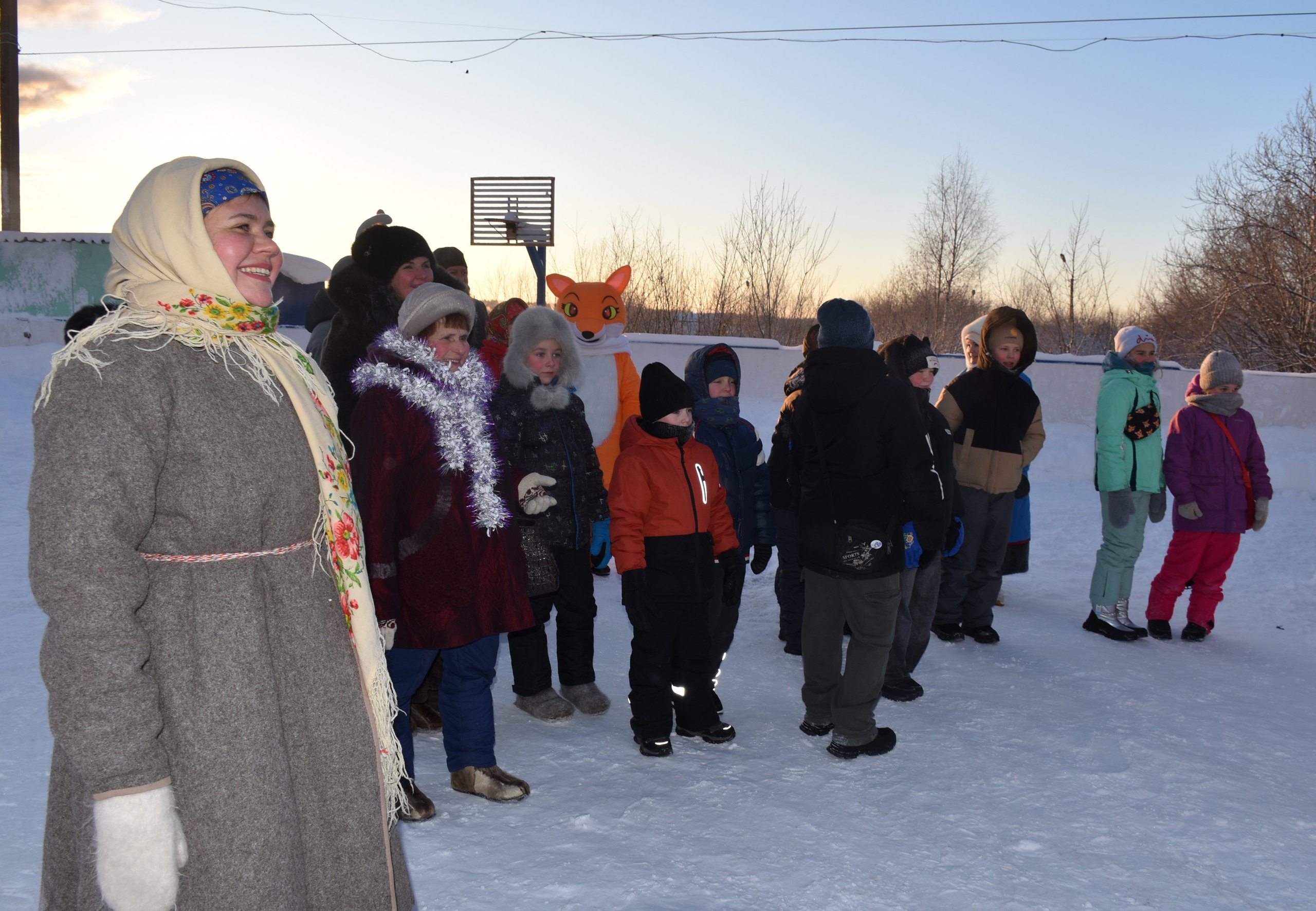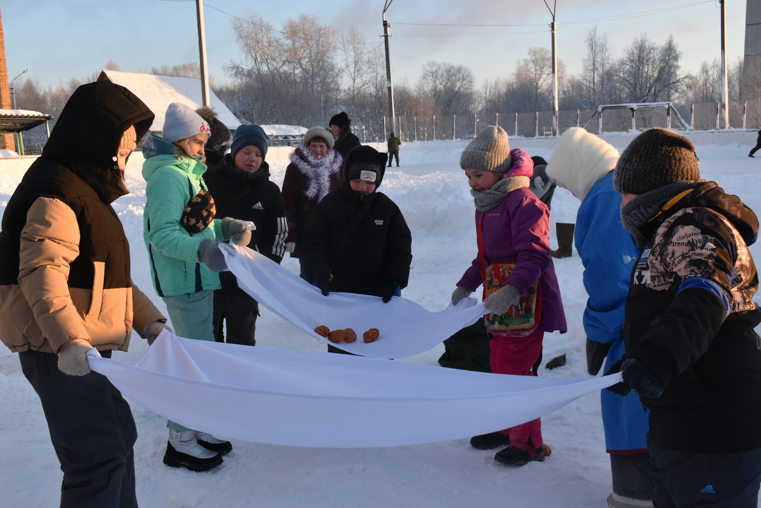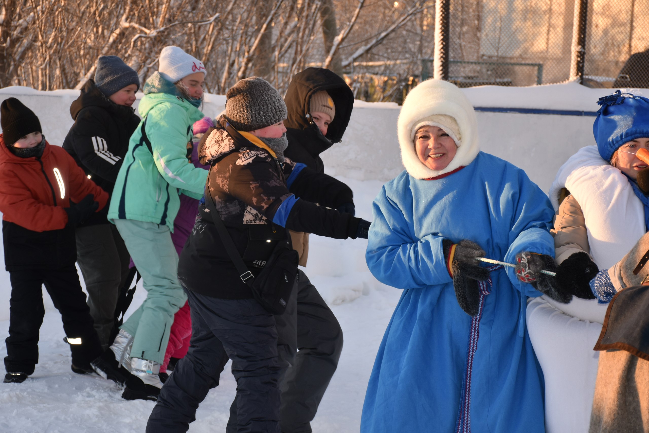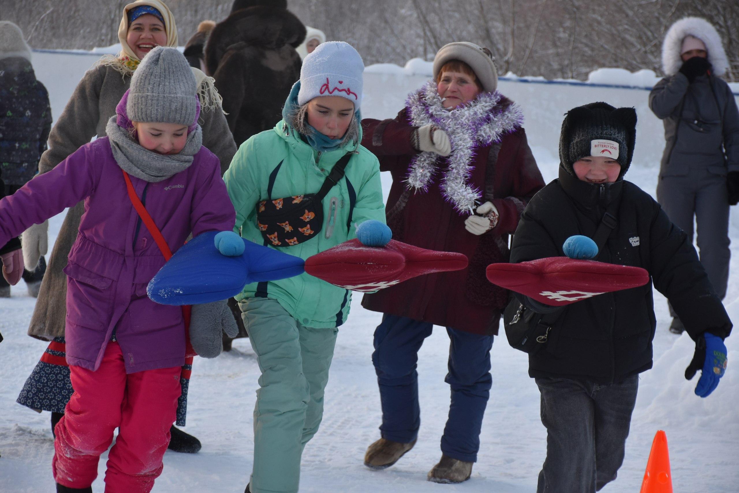 Ребята активно участвовали в весёлых коми играх, проверяя ловкость и смекалку: переносили снежки на рукавицах, ловили оленя, сбивали препятствия валенками и управляли вьюгой.