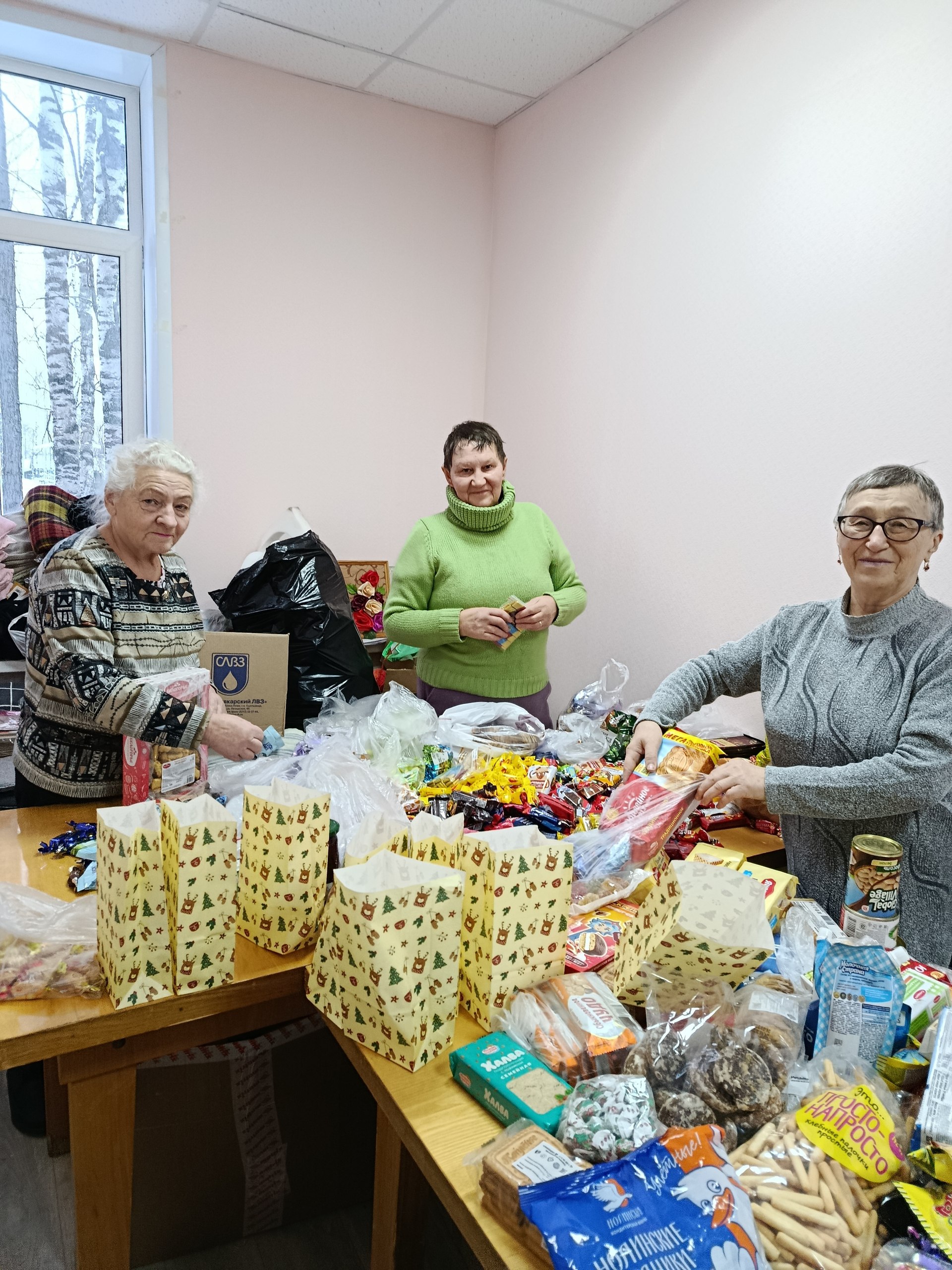 Неравнодушным жителям посёлка несли продукты питания, новогодние сладости, медикаменты, теплые вещи для наших ребят, а также конкретные материалы для работы Совету женщин. На собранные деньги были закуплены гвозди, саморезы, диски на болгарку, электроды.