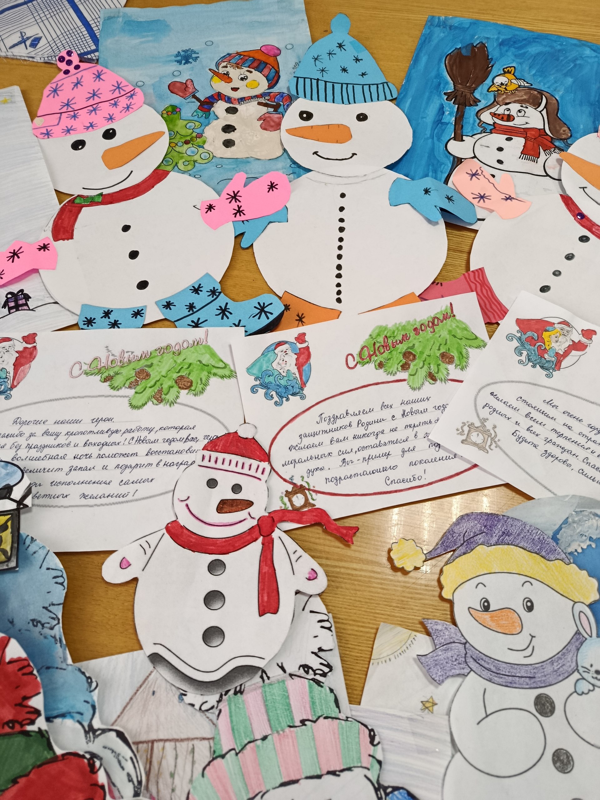 Учащиеся школы №15 подготовили письма-открытки бойцам и самодельных снеговичков. Пусть эти искренние рисунки и добрые слова станут для наших бойцов самым тёплым сюрпризом и напоминанием, что их ждут, в них верят и ими гордятся!