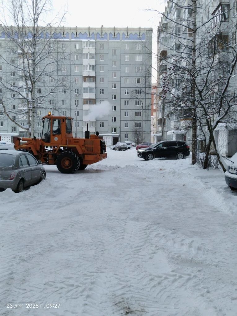 Эжвинский "Жилкомхоз" за сутки также вывозил снег с улиц и убирал дворы по улице Славы.