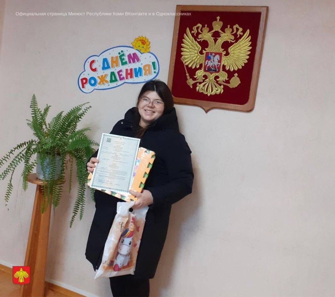 В торжественной обстановке молодым супругам вручили первый государственный документ маленькой Екатерины — свидетельство о рождении.