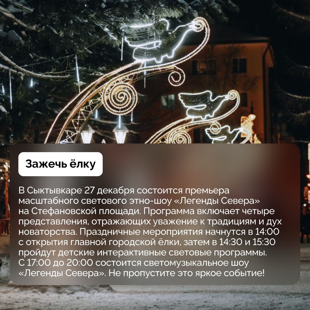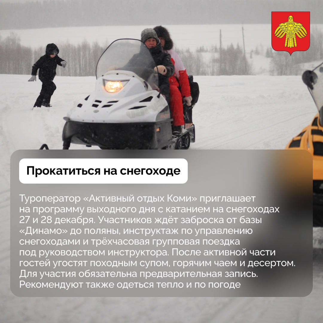 По традиции собрали для вас несколько интересных идей. В подборке — премьера масштабного светового этно-шоу «Легенды Севера», катание на снегоходах, новогодний квест «В поисках волшебной подковы» и другое.