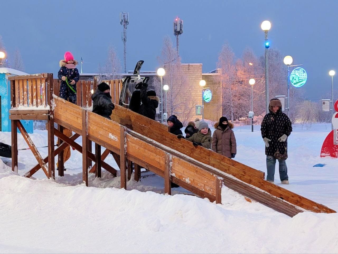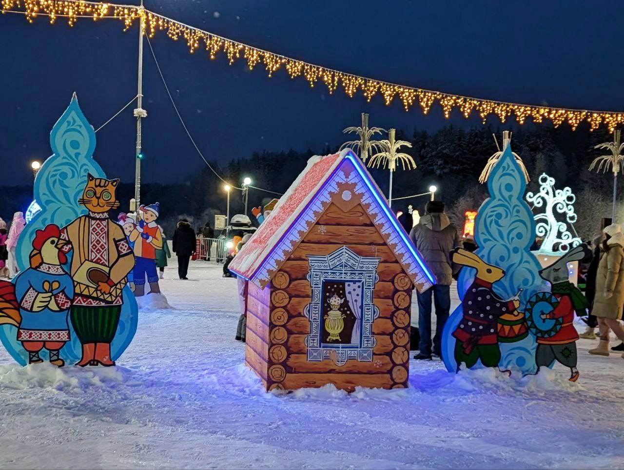 К назначенному времени здесь собрались эжвинцы и гости района. Они катались с горок, фотографировались на фоне колоритных фигур и светящихся рамок, ворот, волшебного ларца и других арт-об'ектов, ряд из которых напоминают о старых добрых сказках и мультфильмах.