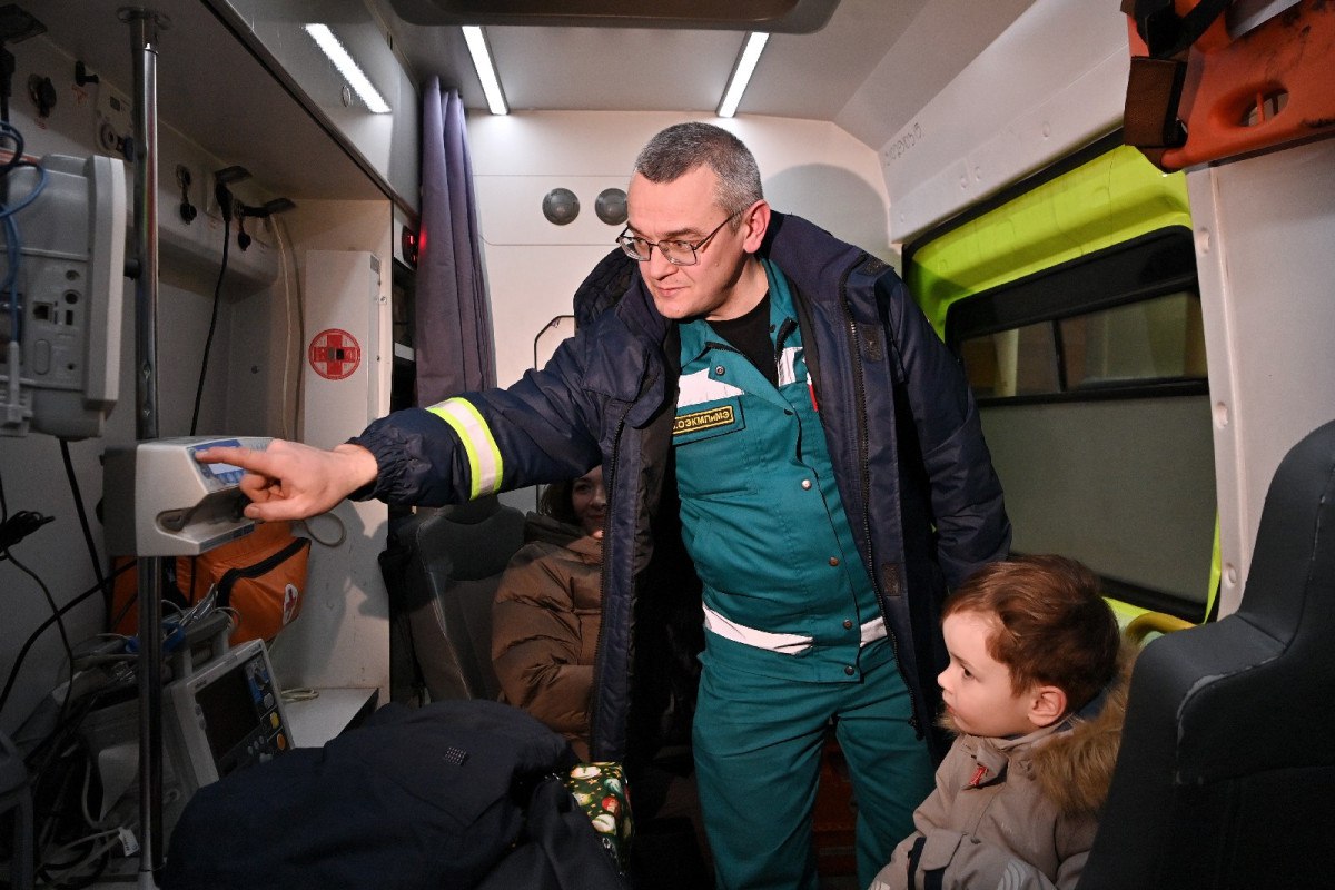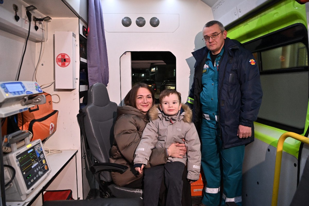 Когда к месту встречи подъехала жёлтая машина скорой помощи медицины катастроф, восторгу мальчика не было предела. Водитель и фельдшер пригласили Марка в кабину, показали оборудование реанимобиля, и началось незабываемое путешествие по зимнему городу. По окончании поездки, завершившейся у дома, где живёт семья мальчика, его глаза светились от счастья.