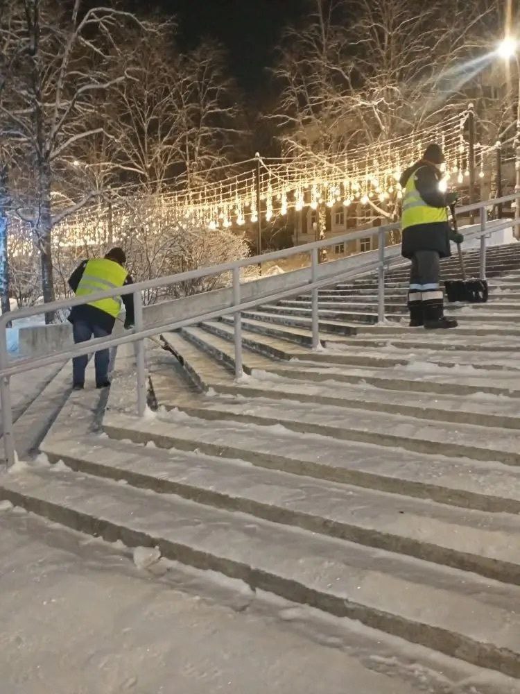 "Жилкомсервис" продолжает работу по уборке общественных пространств города. Особенно у новогодних городков, которые являются центром притяжения сыктывкарцев в праздники.
