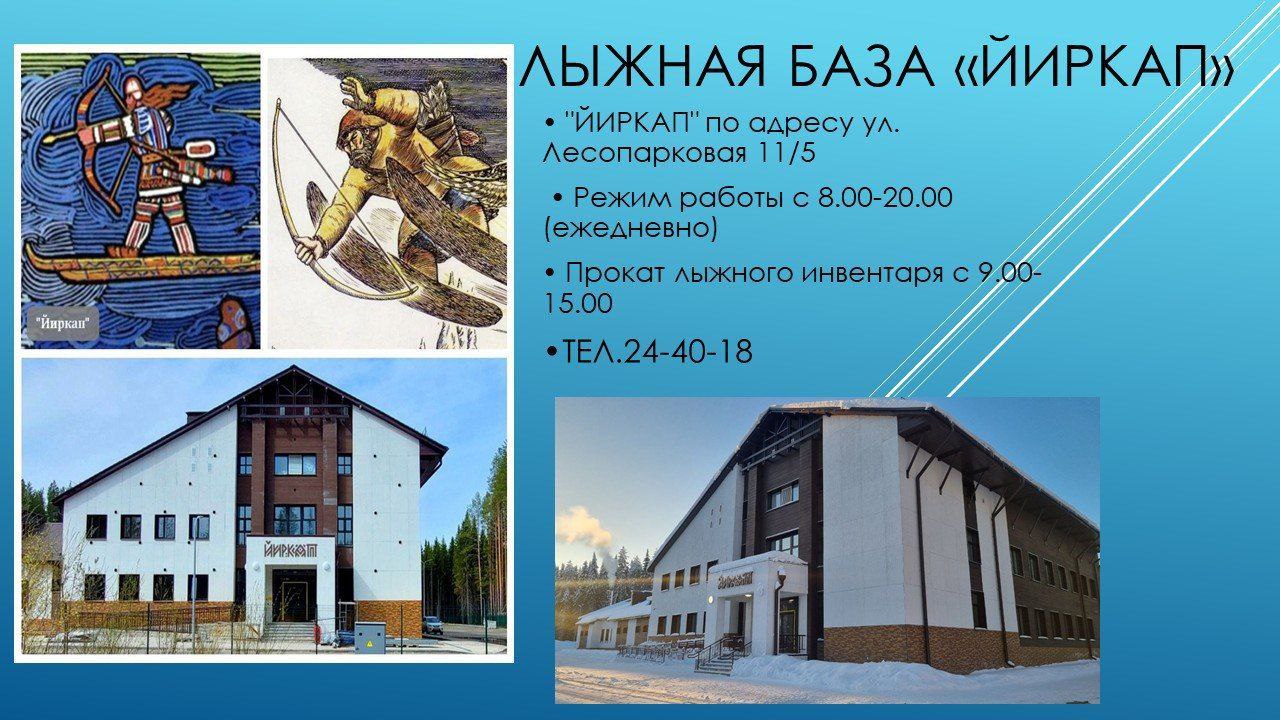 Уважаемые горожане и гости столицы! В эти дни в ежедневном режиме работает новая лыжная база "Йиркап" на улице Лесопарковой, где можно переодеться и взять на прокат лыжный инвентарь. Видел в сети вопросы о графике работы базы, поэтому её сотрудники сделали для всех любителей лыж вот такую памятку по графику работы и контактным данным! Приходите на базу, вставайте на лыжню