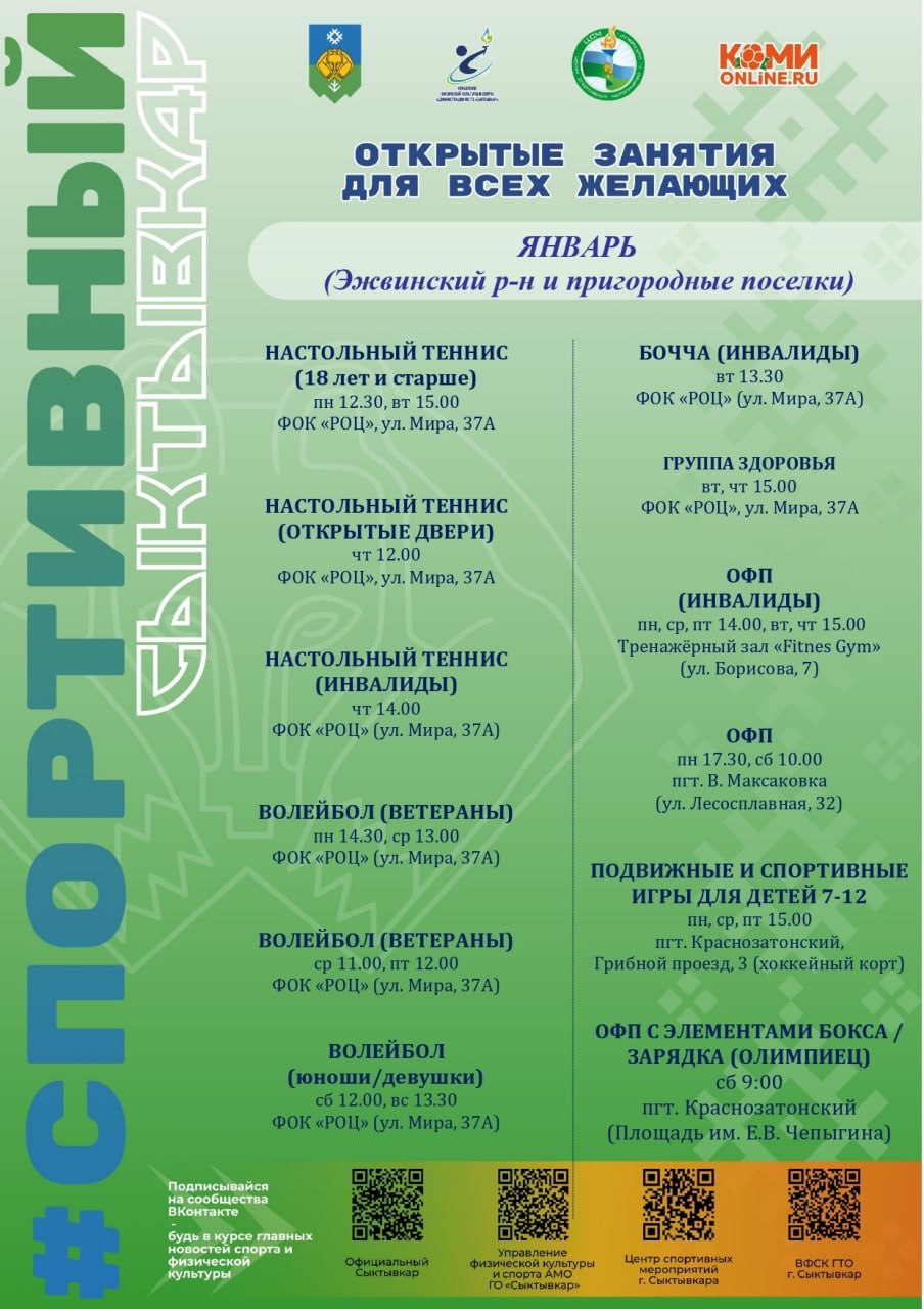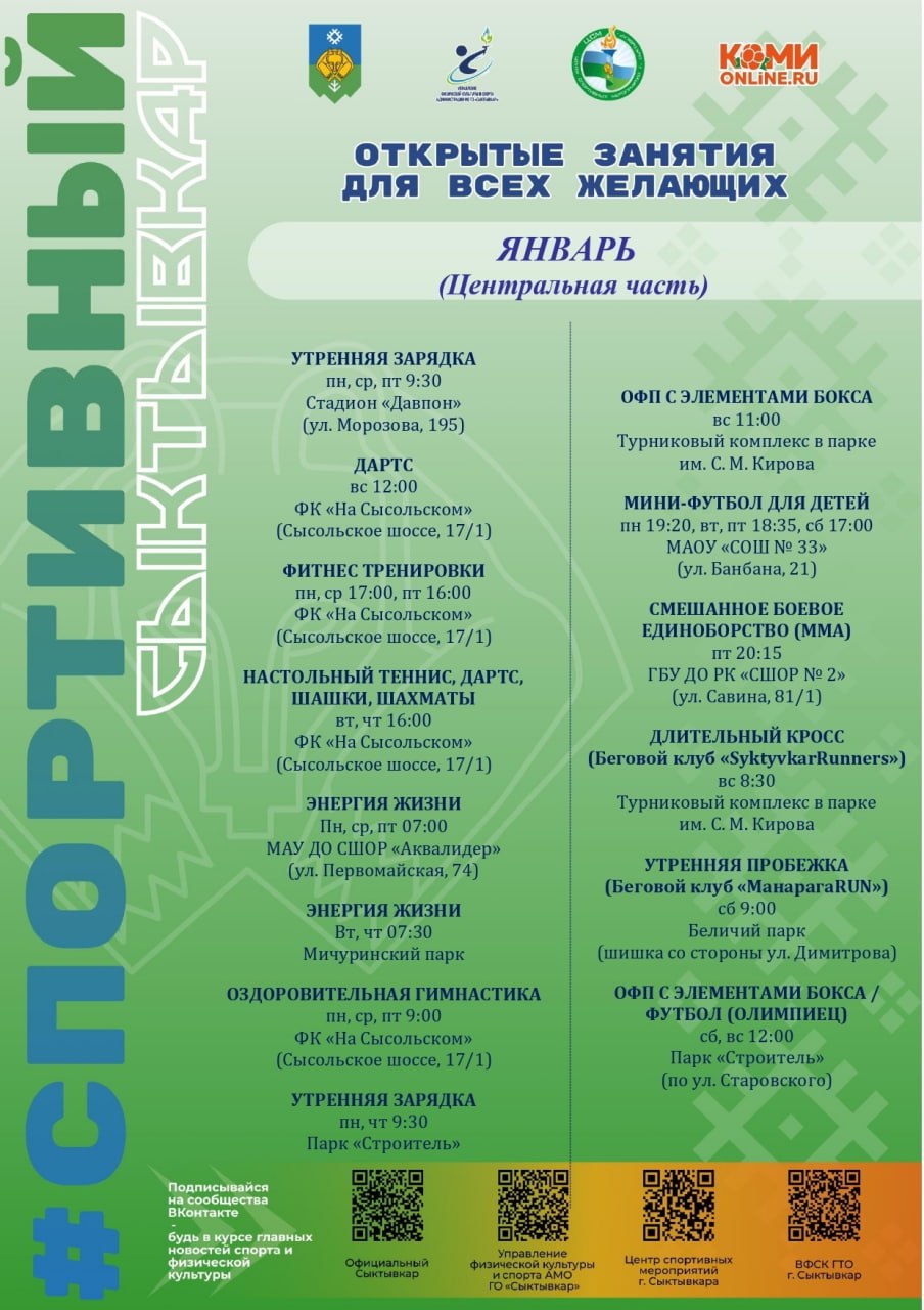 Выбирайте то, что вам ближе, и приходите заряжаться энергией!Мероприятия способствуют популяризации здорового образа жизни среди населения, реализуя цели нацпроекта «Семья». Республика Коми Z