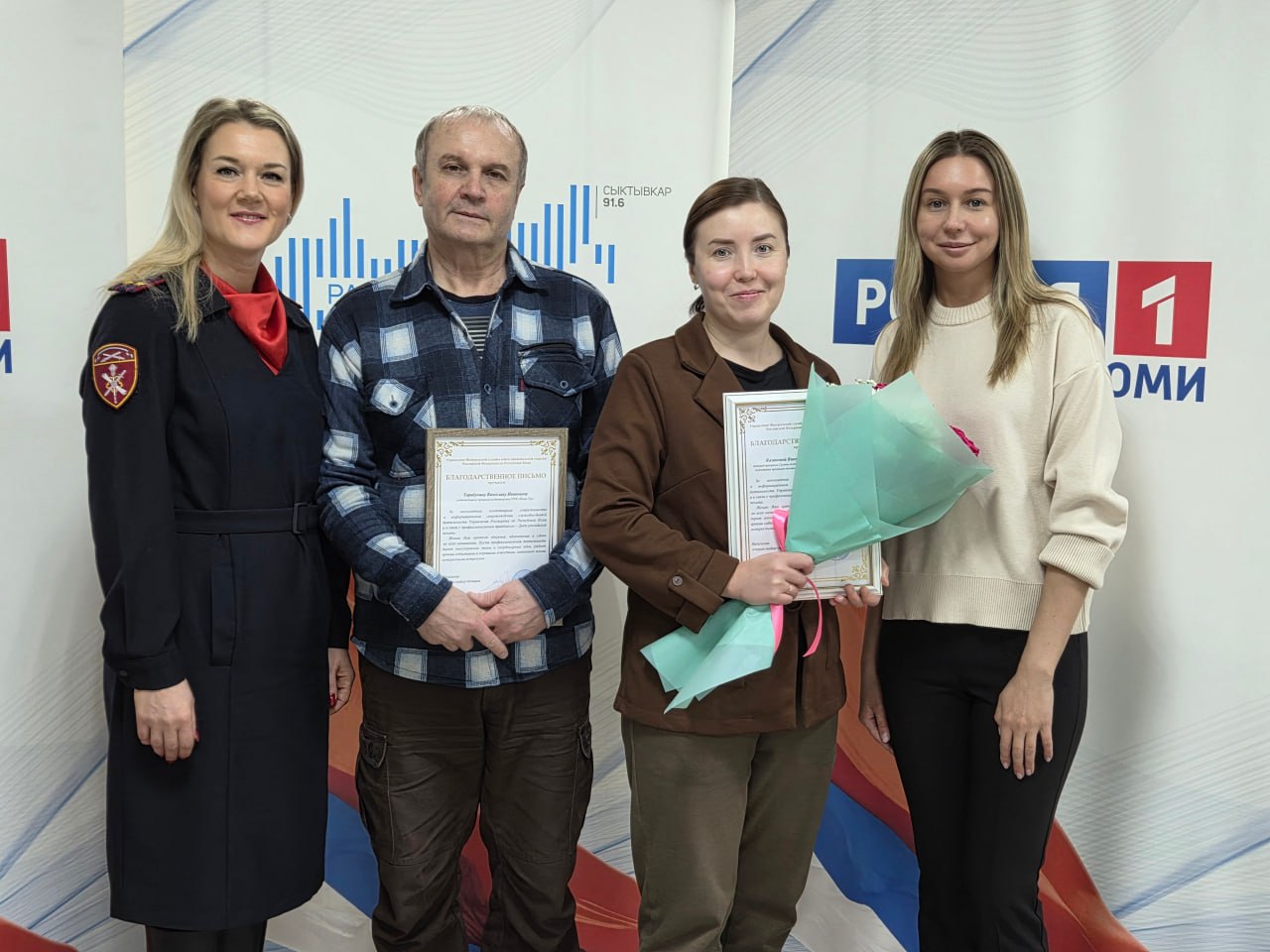 Сегодня сотрудники Управления Росгвардии по Республике Коми вручили благодарственные письма работникам телерадиокомпании «Коми гор» Казаковой Виктории и Тарабукину Вячеславу за многолетнее плодотворное сотрудничество в информационном сопровождении...
