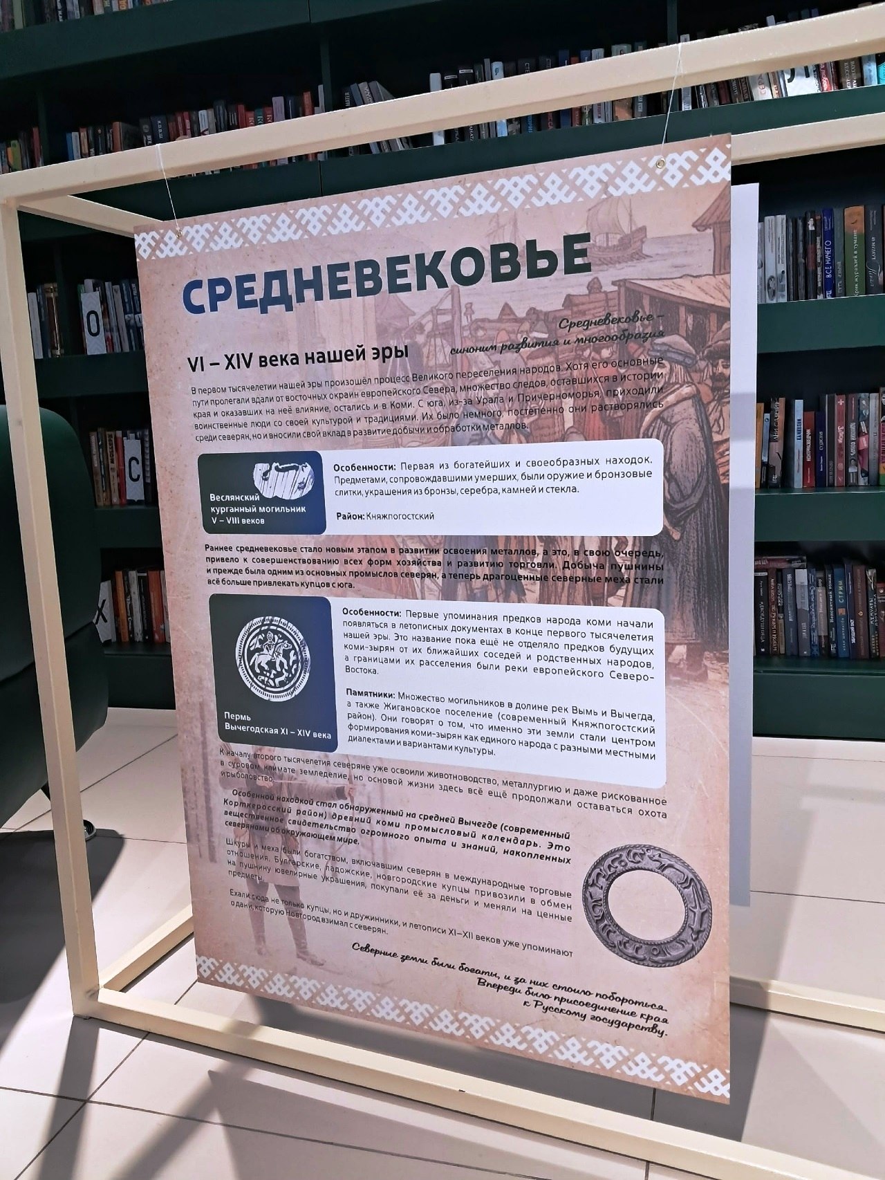 В Центральной городской библиотеке до конца января проходит выставка "История земли Коми: от древности до наших дней", организованная при сотрудничестве с галереей "Пейзажи Севера".