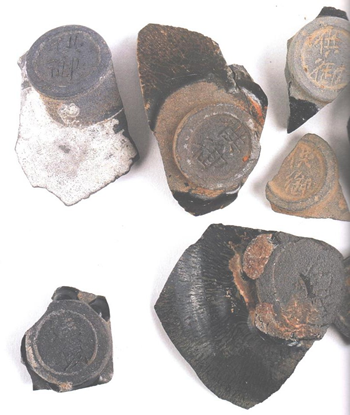На дне этих изделий можно обнаружить клейма, которые становятся важной частью их истории. Существует четыре вида печатей: имена мастеров, номера, символы и посвящения. Наиболее заметными являются именно посвящения, такие как иероглифы «???» (гунъюй) и «???» (цзиньчжань), что в переводе означает «посвящение в дар». Эти надписи подтверждали, что предмет был презентован императорскому двору династии Сун.