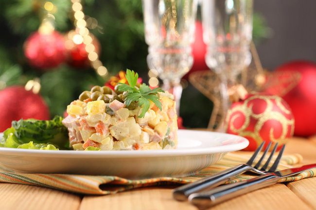 В оригинальном рецептеSalat оливье упоминаются далеко не все те компоненты, что стали привычными для современного стола. Вместо докторской колбасы на первое место выходят более изысканные продукты. Так, в классическом варианте используются: