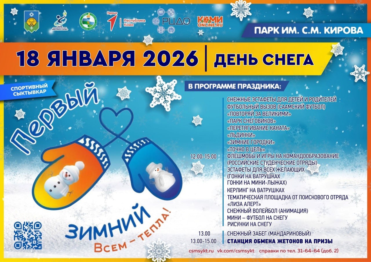 Работа площадок начнётся в 12:00. Завершится праздник снежным забегом, старт которого в 13:00.
