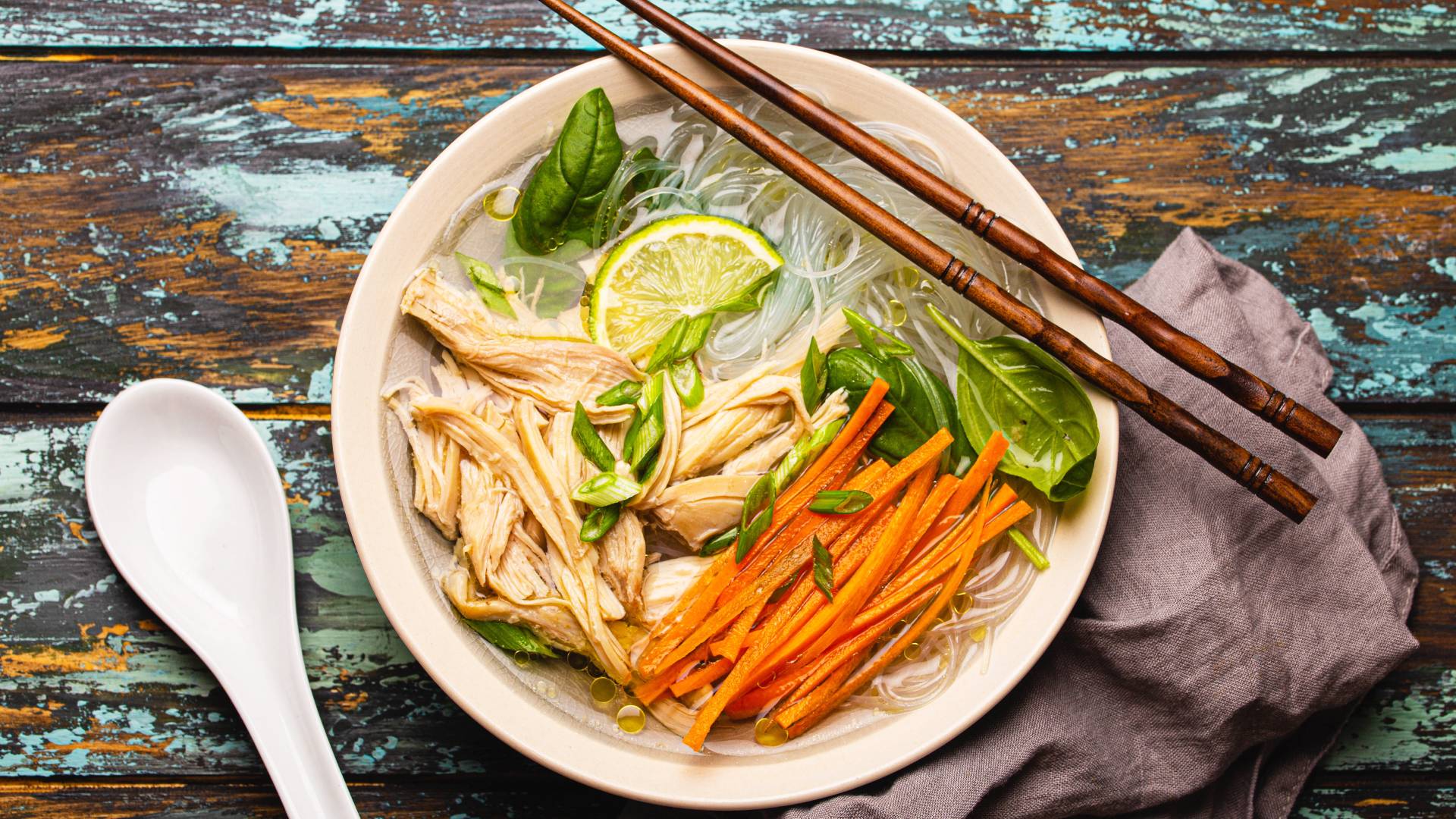 Разлейте суп по тарелкам и разложите измельченный зеленый лук, курицу и кабачок. Посыпьте кунжутом, советует «Лайфхакер».