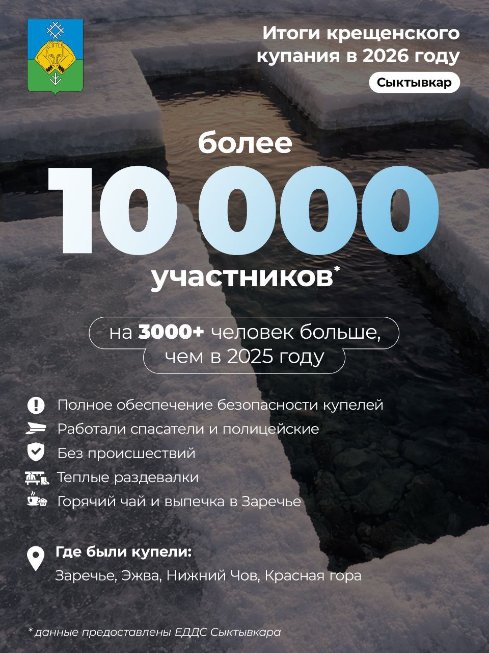 В этом году на Крещенские купания в Сыктывкаре вышли более 10 тысяч человек, рекордное количество за последние годы! Очень мощный, тёплый по атмосфере праздник посреди зимы! Для меня это всегда про доверие и про особое чувство единства города, когда люди разных возрастов и профессий собираются вместе ради традиции и внутреннего настроя.