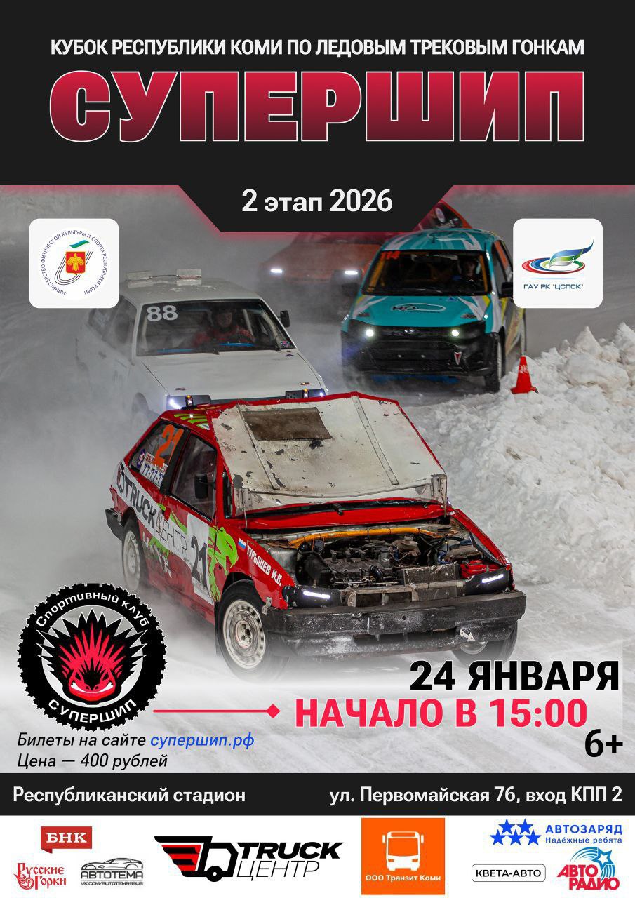 СуперШип -это культовые ледовые гонки на Центральном стадионе в Сыктывкаре, где ревут моторы, искры летят от шипов, а эмоции зашкаливают!