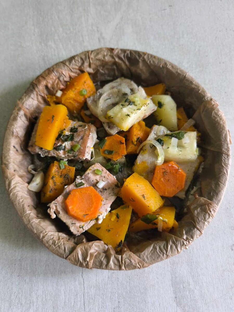 Вечером, когда солнце уходит за горизонт, а демонстрация кулинарного таланта не прекращается, одна бабушка решила устроить маленький праздник для своего внука. На ужин она приготовила изысканное блюдо – горбушу с овощами, которое способно удивить не только своим вкусом, но и ярким оформлением.