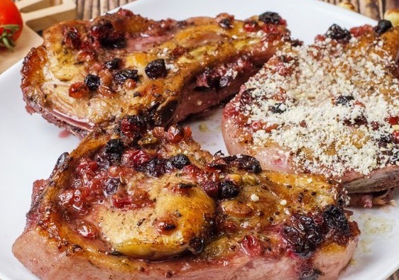 Для начала необходимо разморозить ягоды, если они были в заморозке. Сухую свиную корейку следует тщательно вымыть и обсушить. В случае, если кусок большой, его можно разделить на несколько частей, сделав надрезы между косточками.