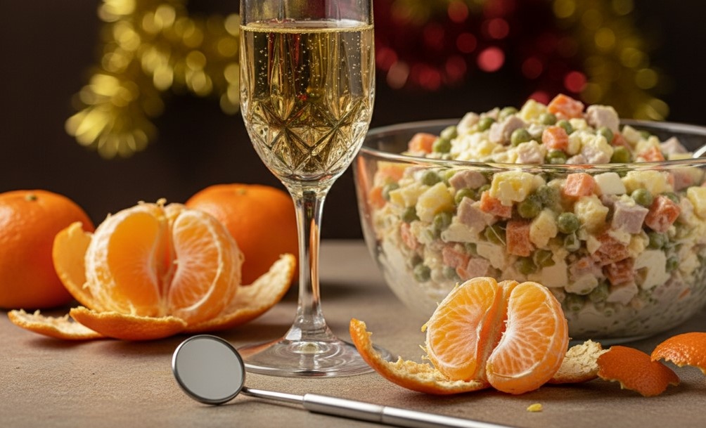 Иногда привычный праздничный стол кажется источником тёплого уюта и легкой суеты — только вот на фоне радостной атмосферы вдруг всплывает знакомое покалывание. Всё вроде бы как обычно: игристое в руках, ароматные мандарины на тарелке, оливье — в самом центре стола. Но зубы реагируют неожиданно быстро, словно праздник включает тревожный сигнал для эмали.