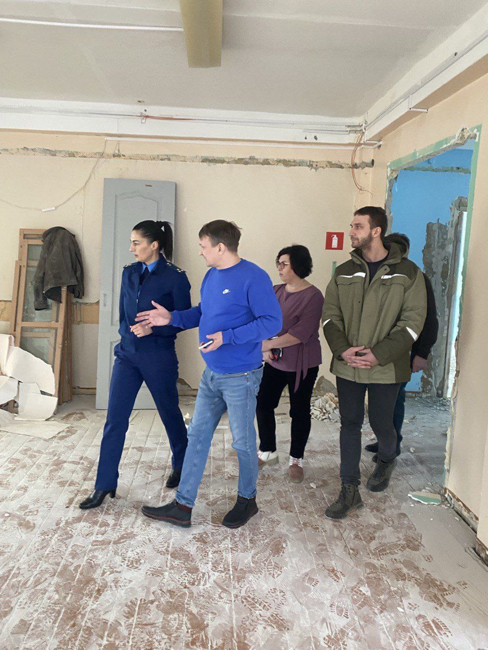 Прокурор г.Сосногорска Виктория Михеева оценила ход работ по капитальному ремонту здания средней общеобразовательной школы 3 с углублённым изучением отдельных предметов, осуществляемого в рамках национального проекта Молодёжь и дети.