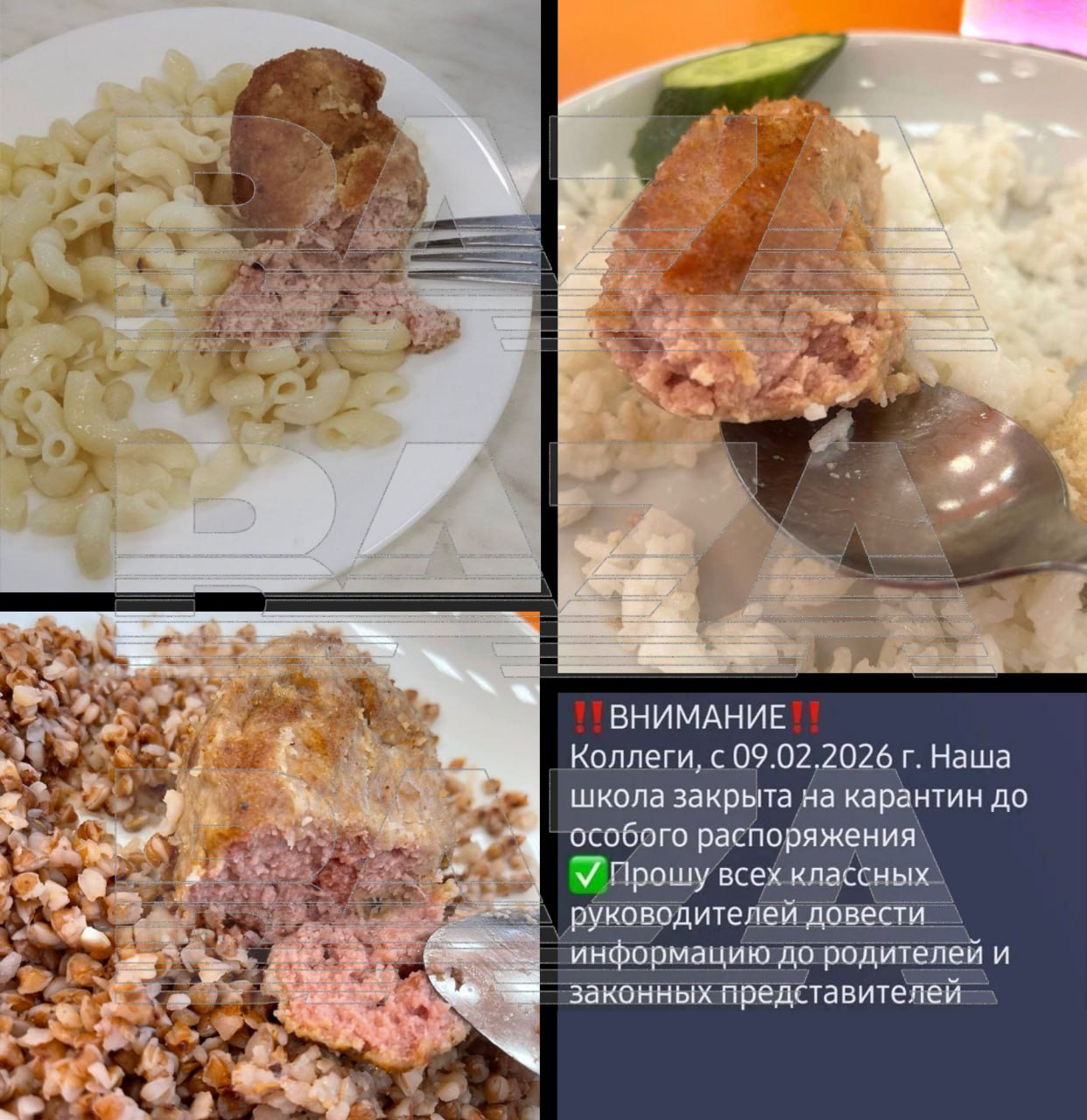 Родители отравившихся учеников жалуются на школьное питание — по их словам, детям подавали недоваренное и не полностью прожаренное мясо. После приёма пищи у школьников начинались резкие боли в животе и другие симптомы отравления.