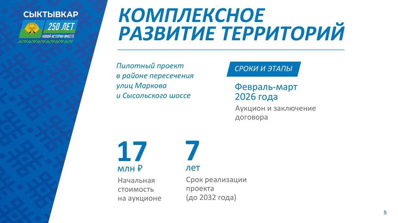 Сыктывкар первым в Коми запускает коммерческий проект комплексного развития территорий