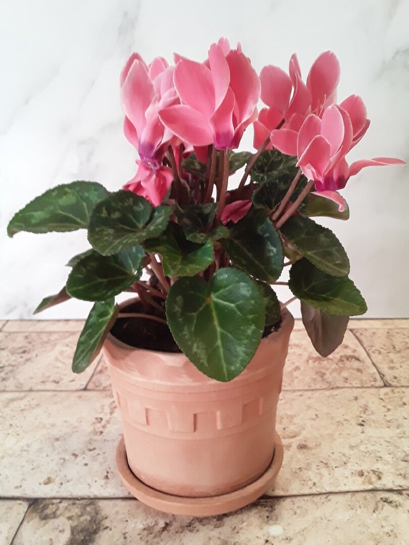 Цикламен был приобретён в начале 2022 года. В окружении цветов, пышной листвы и заботливых рук он оказался на полке в строительном магазине. Сразу же после покупки растение было пересажено из своего пластикового горшка в более эстетичный керамический. На тот момент он имел лишь статус декоративного элемента, но время показало, что это не обычный «одноразовый букет».