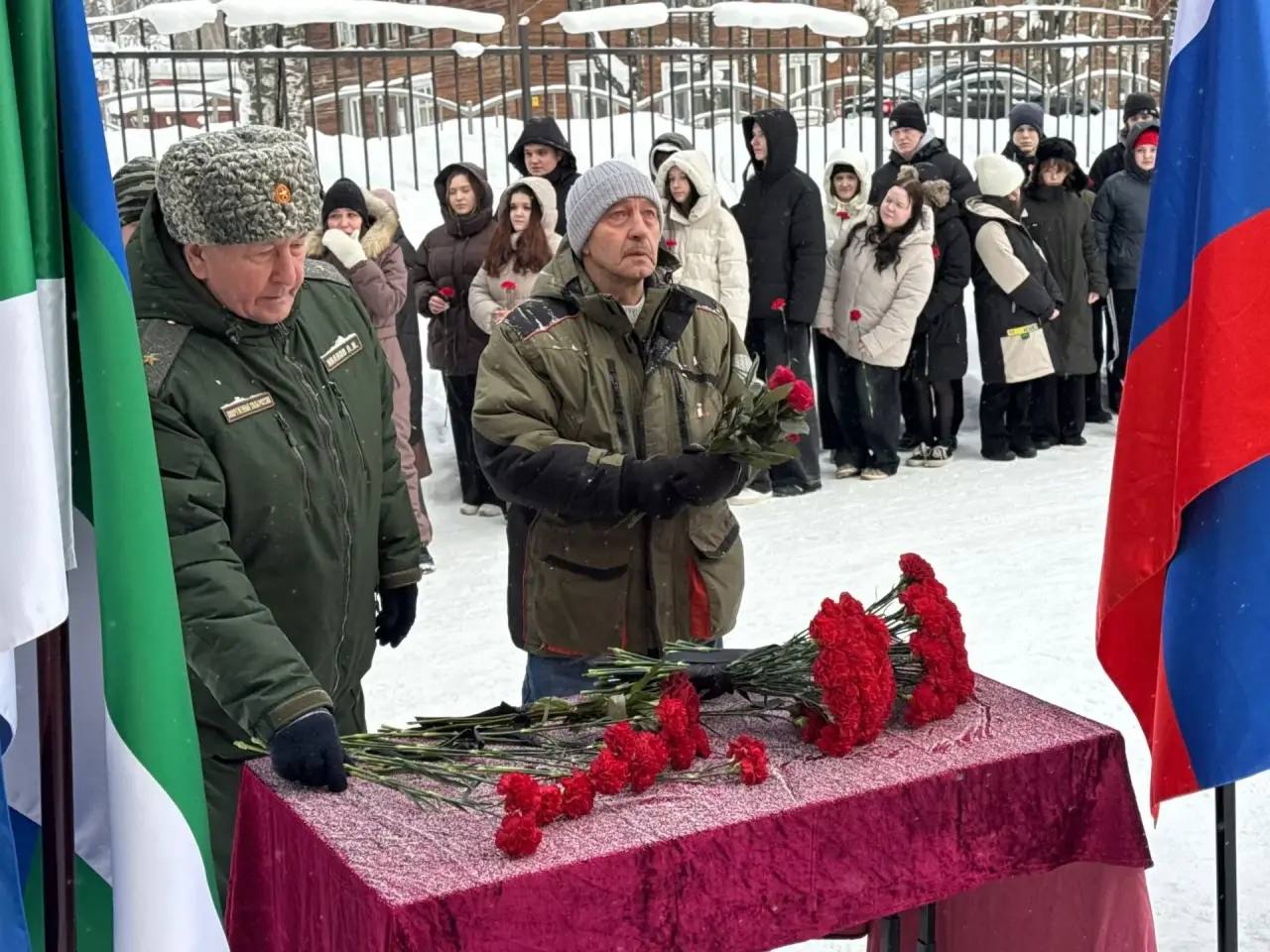Отдать дань уважения человеку, чья жизнь стала примером мужества, верности долгу и осознанного служения Отечеству пришли родные и близкие, педагоги, учащиеся. Имя героя навечно останется на фасаде родной школы, чтобы каждый день напоминать нынешним и будущим поколениям учеников: настоящие герои живут среди нас.