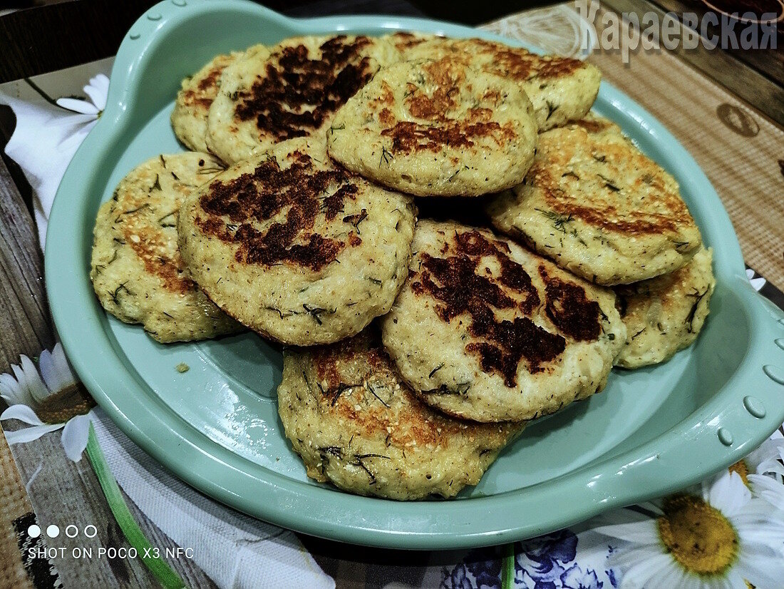 После этого тесто можно легко формировать в небольшие оладьи, которые не распадаются и легко отделяются от рук. Оладьи жарятся с обеих сторон под крышкой — так они получаются более мягкими и сочными. По желанию, их можно подавать со сметаной или другими любимыми соусами.